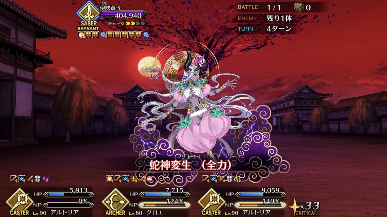 日本鯖縛りとかやってみるかーと思ってたら伊吹童子のあまりの無体なギミックに真顔になり、無敵貫通礼装持ち弓王とWキャストリアで水浸しにしました