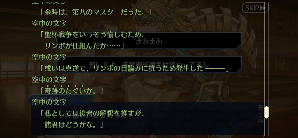 リンボがカルデアの知らない情報を勝手にしゃべるだけだから何を隠したいかとかそれこそ延々しゃべらせ続けないと絞ることすらできんぞ>>942
