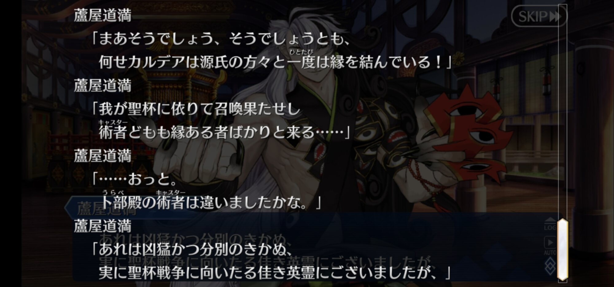 威嚇する猫とか言われてたねえグランドク〇野郎感あるとずっと言われていた晴明がわりと友好的な関係っぽいしアイツあんな悪じゃないっしょと思う程度には信頼しててさらに泣いて自害しようってところで声かける程度には気にかけている上にチートレベルで色々お見通しのやり手なはずなのに