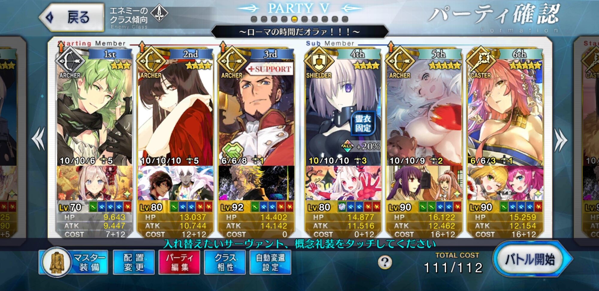 無敵貫通礼装持ってるならそれ付けるだけで一方的に殴れるゾ。あと、キャストリアは異常対策しといたほうが良い(付与される全体麻痺を見ながら)。>>93