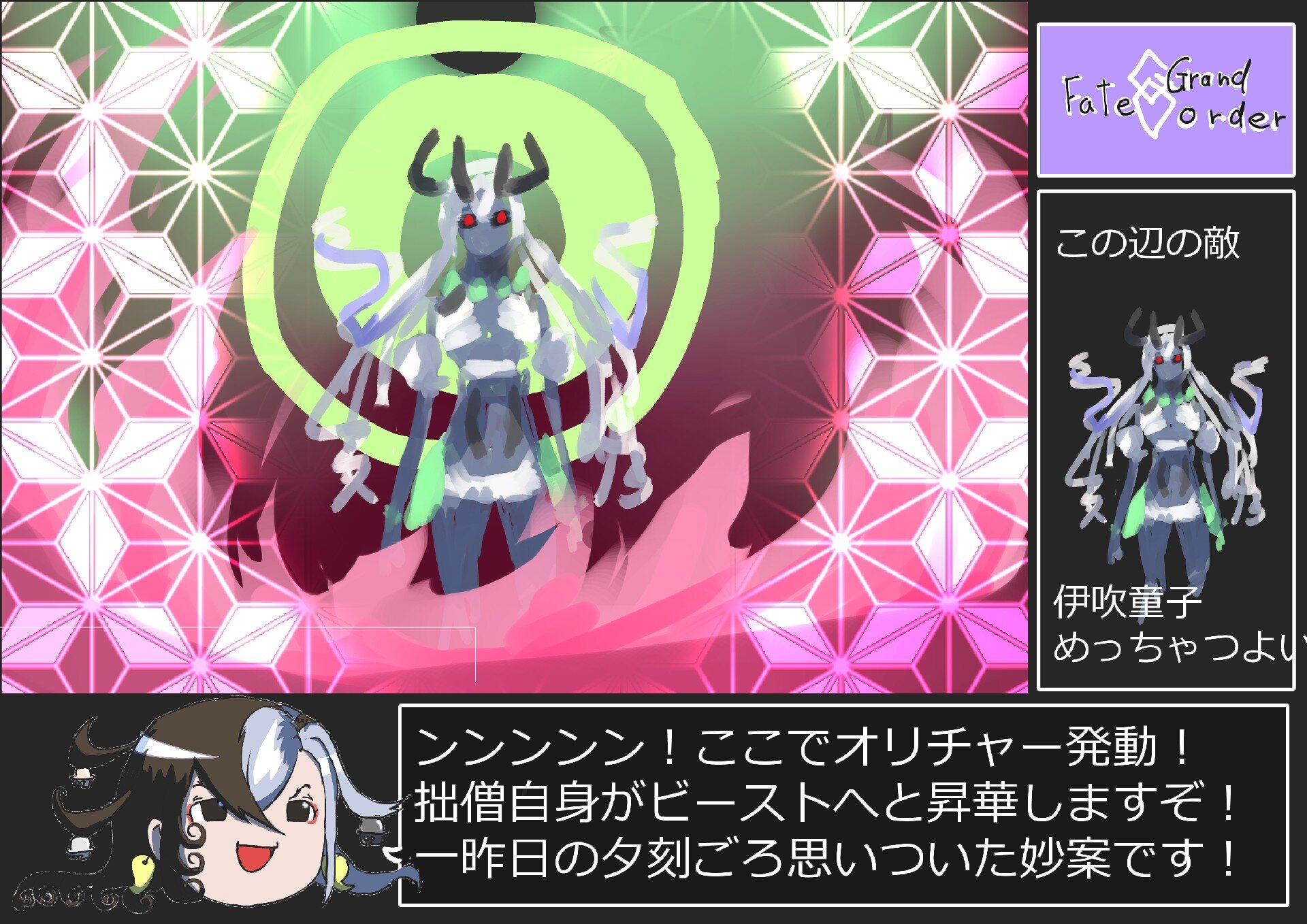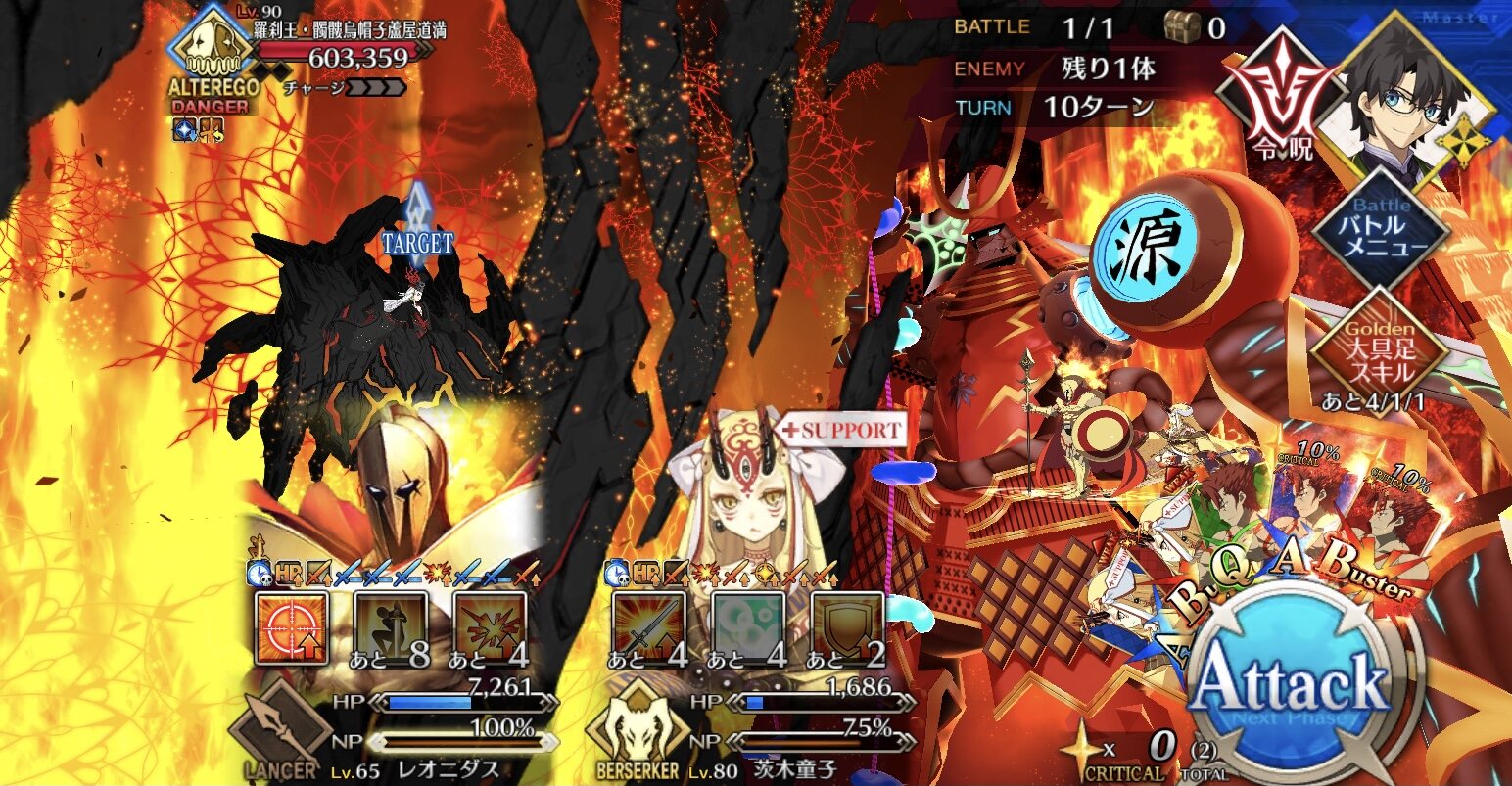よーし今回も宝具連発耐久パで勝つぞ~(バベジンも酒呑も同じ手で倒した(どっちも大体45ターンでした))