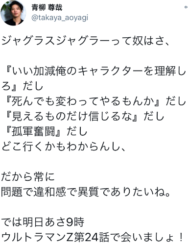 流石にコイツばかりはゼット限りにして欲しい…ベリアルやジャグジャグとか、もう一度出てほしい悪役はいるけどここまで「ここでトドメを刺してくれ」って思ったやつは久しぶりだわ>>908