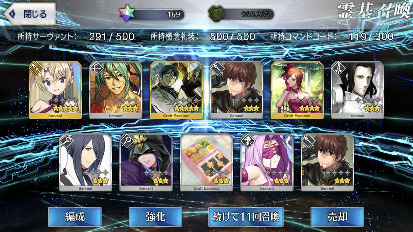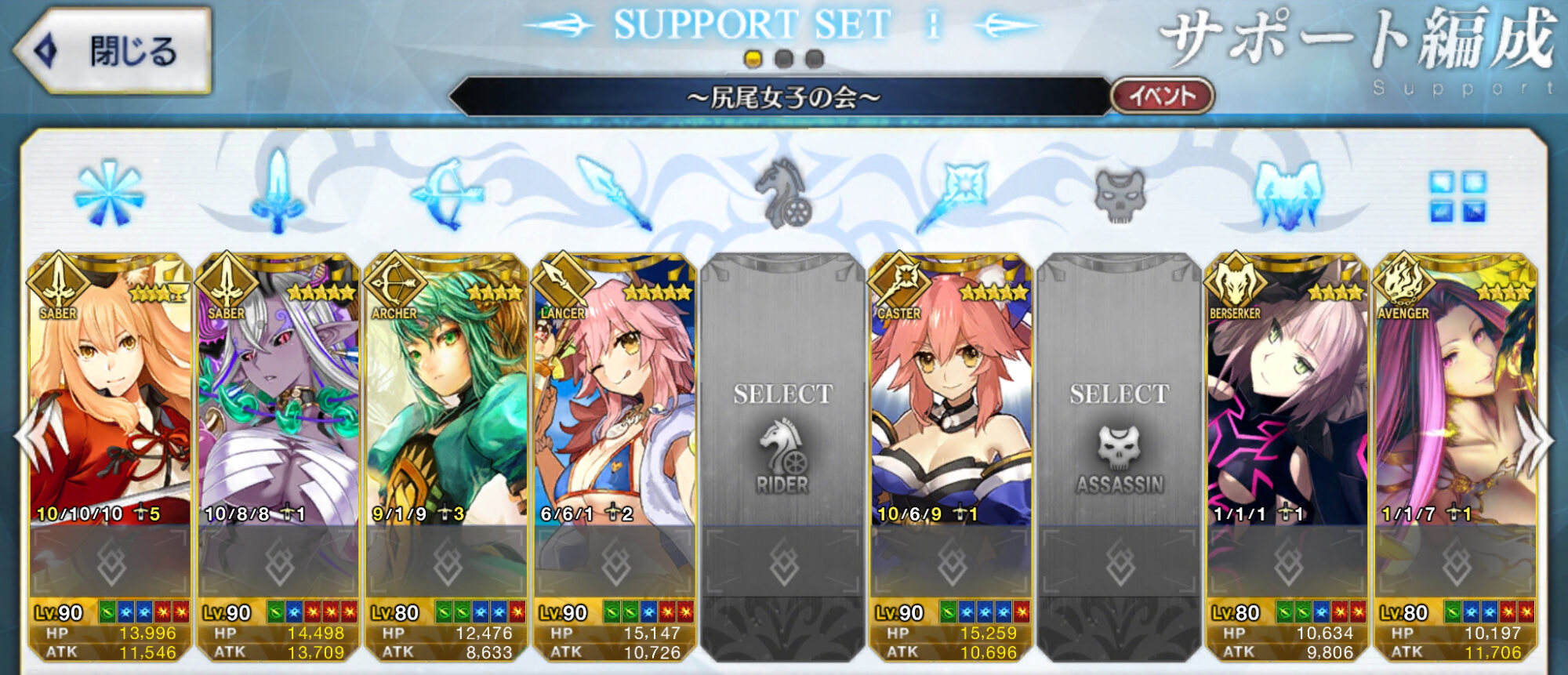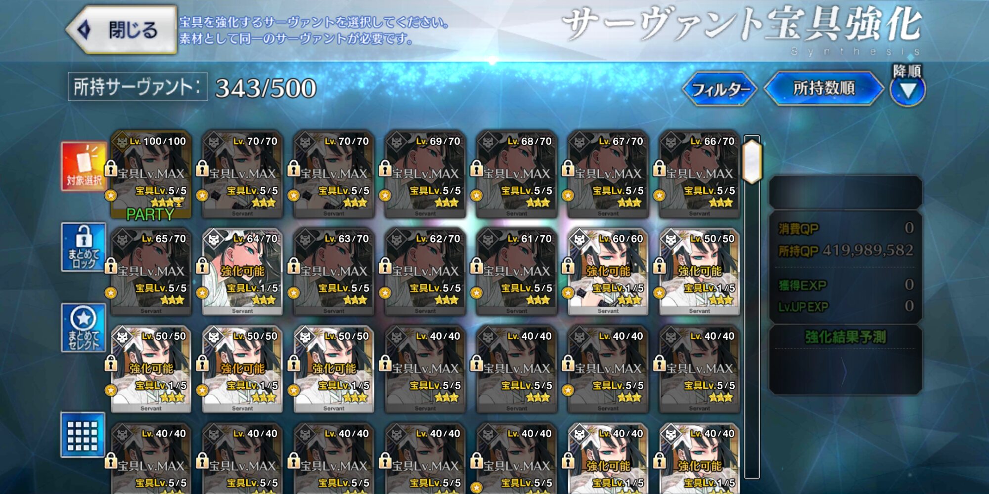 見ろ!その結果がこれだ!!(星3鯖が大量に並んだ所持枠)