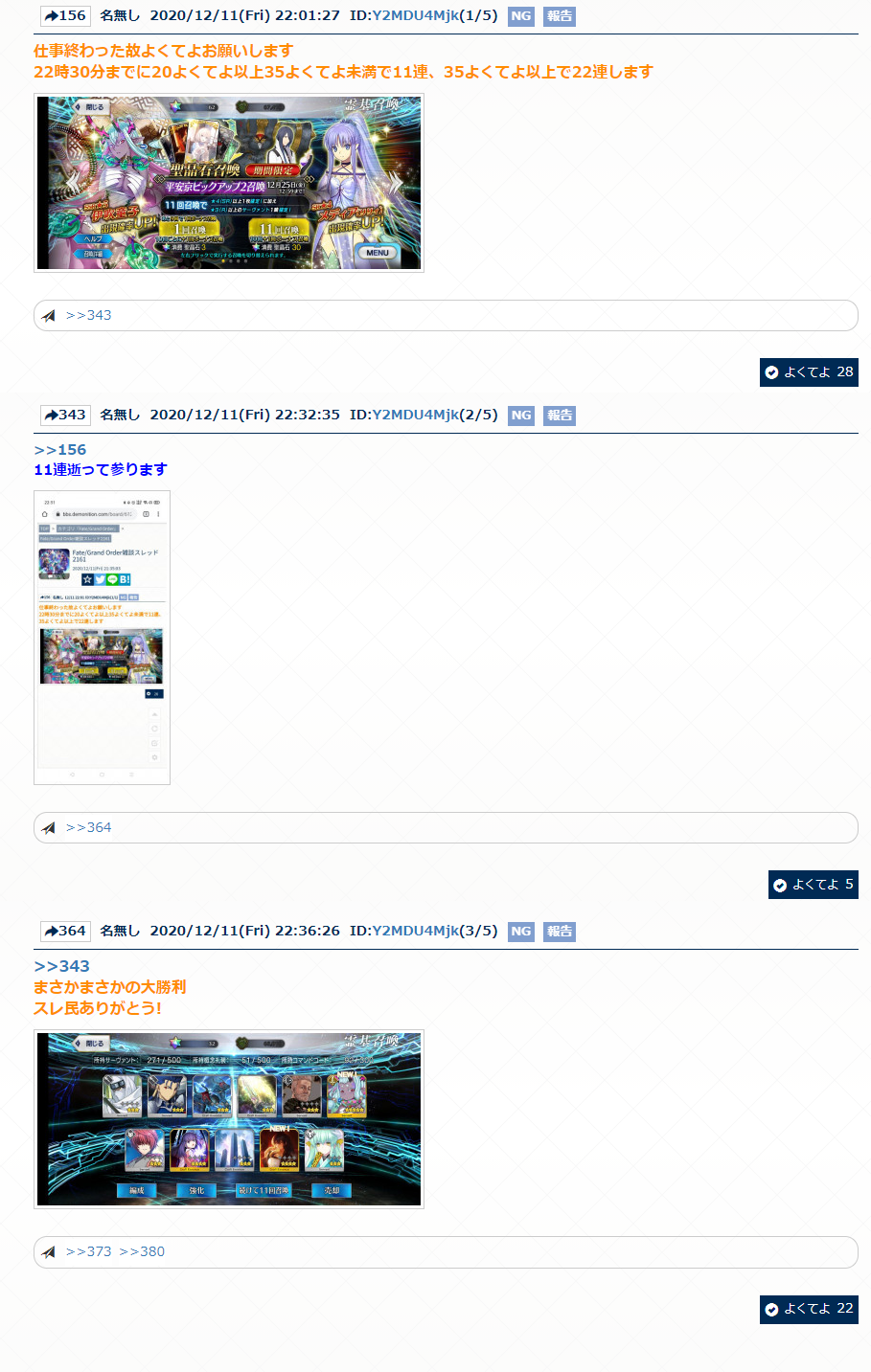 よくてよ無しのガチャ報告は以下のスレッドへ