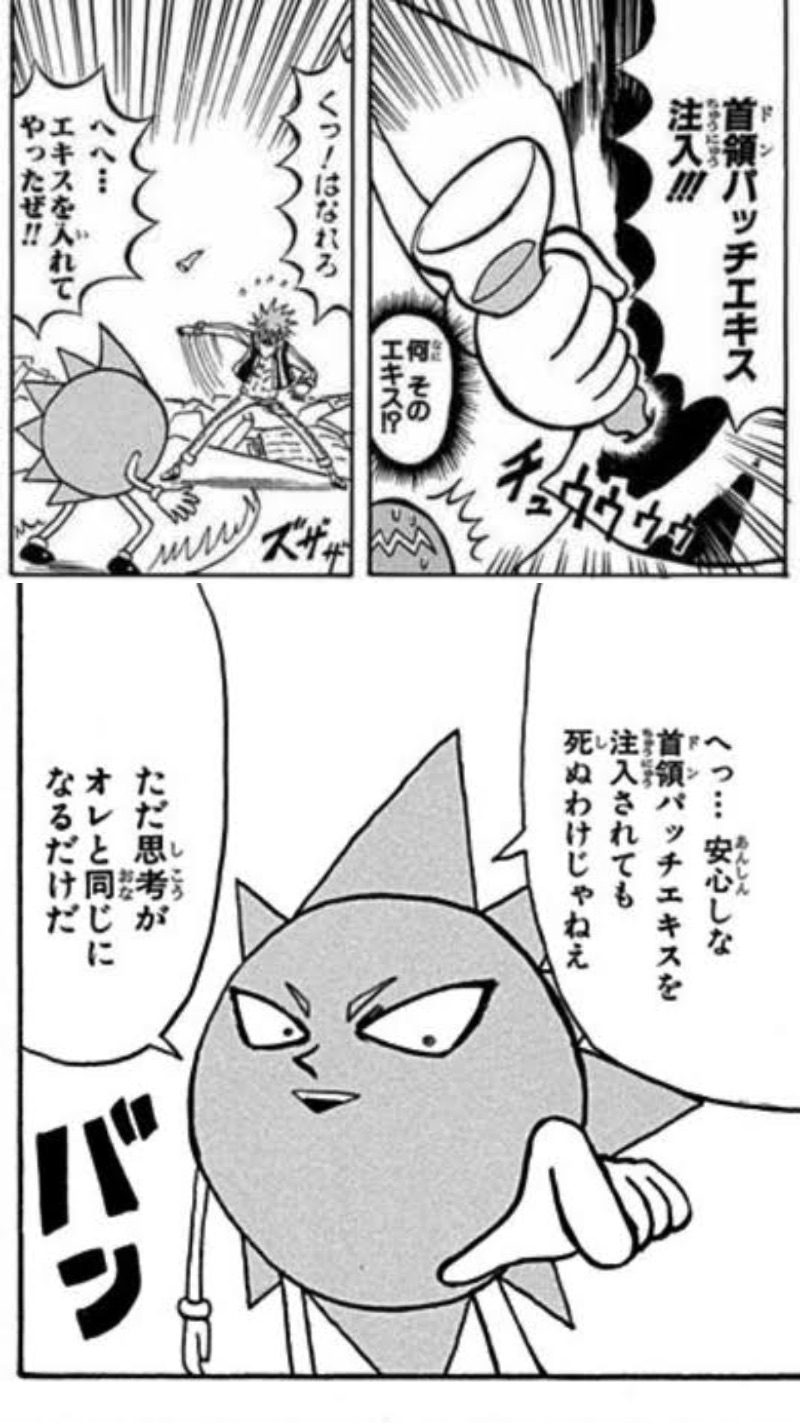 ・水に流されるのを利用して最終決戦の場に参戦。この時キメラのおっさん達に「ボロボロのおっさん一人に勝てる気しねえ」と弱音を吐かせるくらいの気迫を見せた
