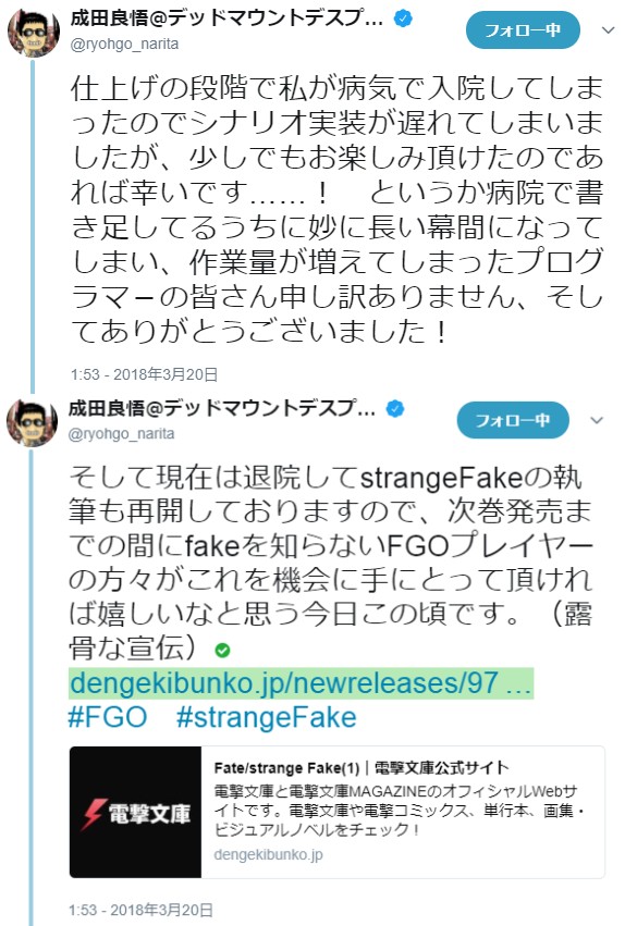 成田良悟氏ツイッター https://twitter.com/ryohgo_narita?lang=ja