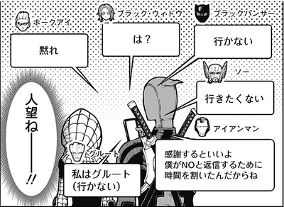 これがデップーのそれなのかジャンプだしでトゥワイスネタやったのかアメコミ詳しく無い私にはわからない>>920