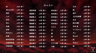 朴璐美、石田彰、小西克幸、沢城みゆき、中村悠一、大川透、三宅健太、岸尾だいすけ、戸松遥