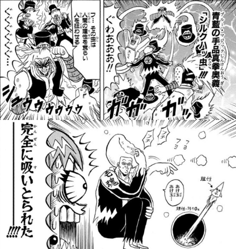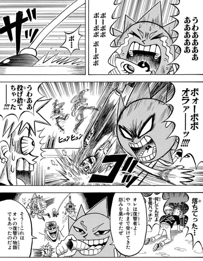 ボーボボでもかなり珍しいフィジカル寄りのステータスなOVERさんは対物理の真紅の手品真拳にはそれなりに対抗できるけど対精神じゃそうもいかない