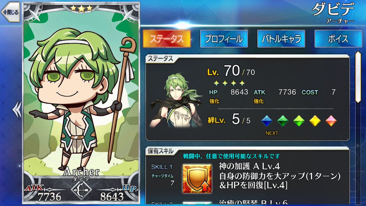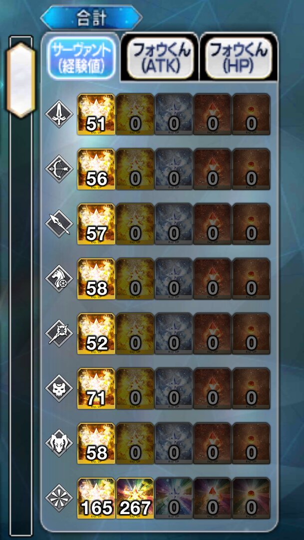 ついでに育成素材もほとんど被りません!すごい偶然ですね!!キャスターの全体アタッカーが必要であれば良かったら育ててみたら良いかもしれませんね!