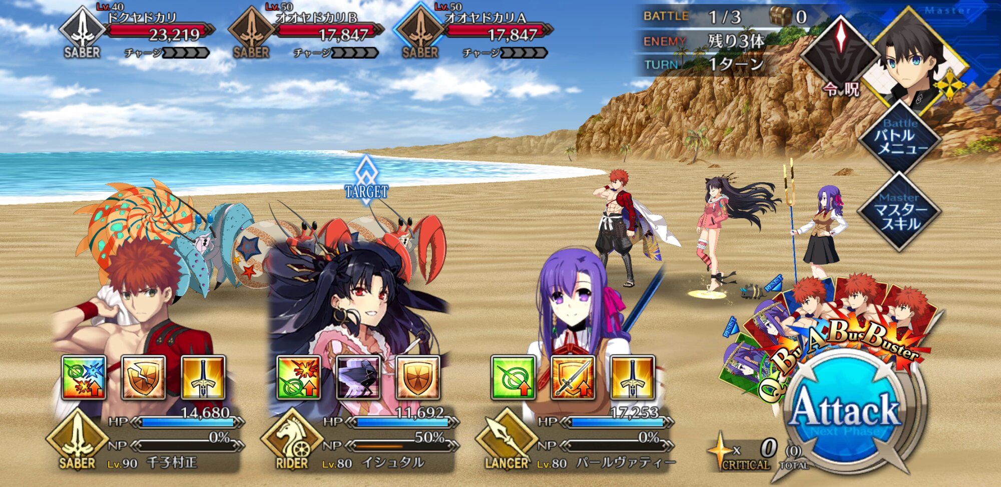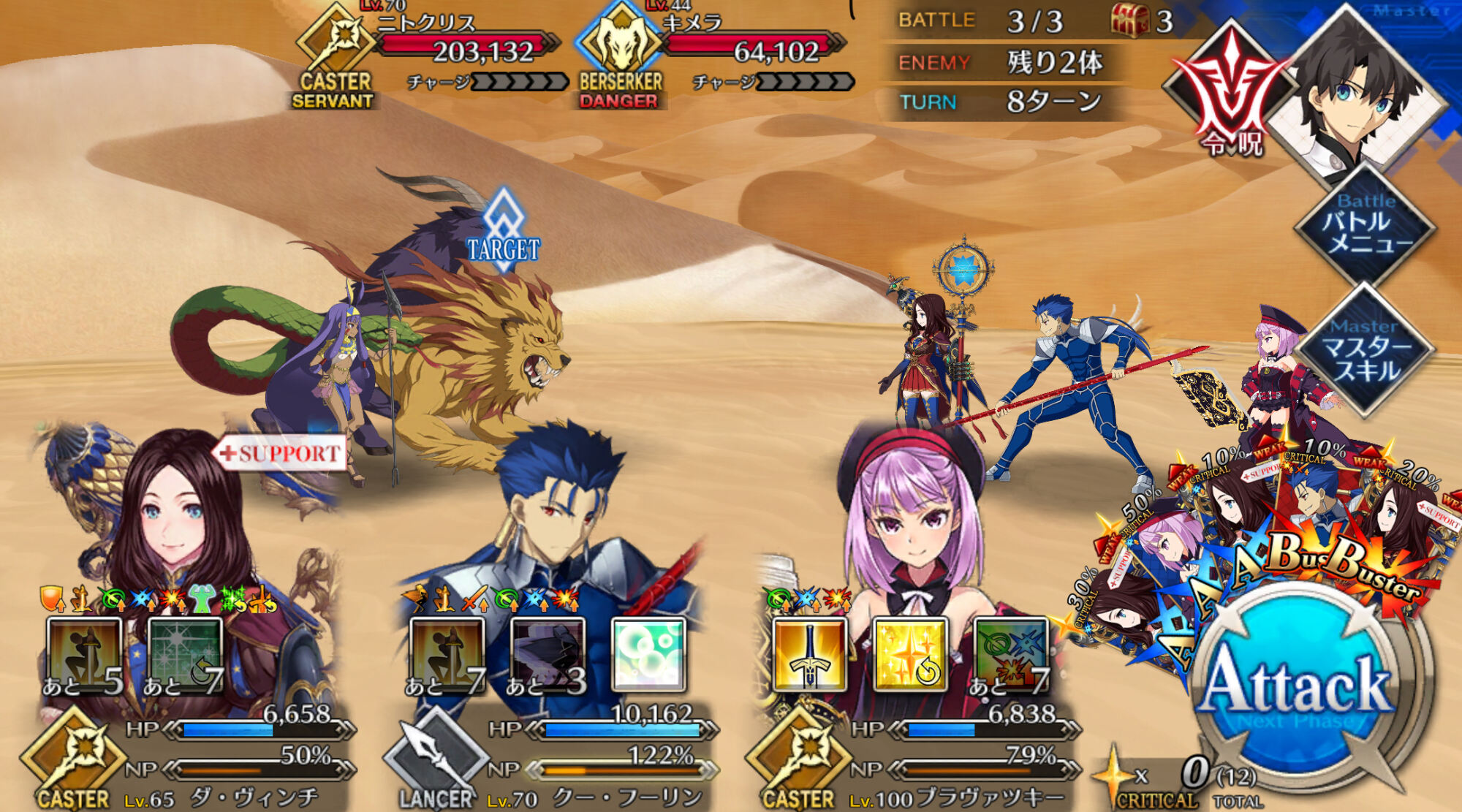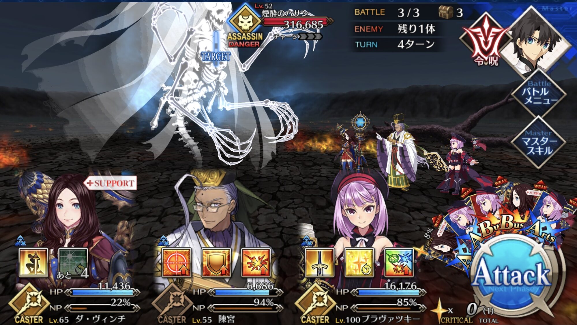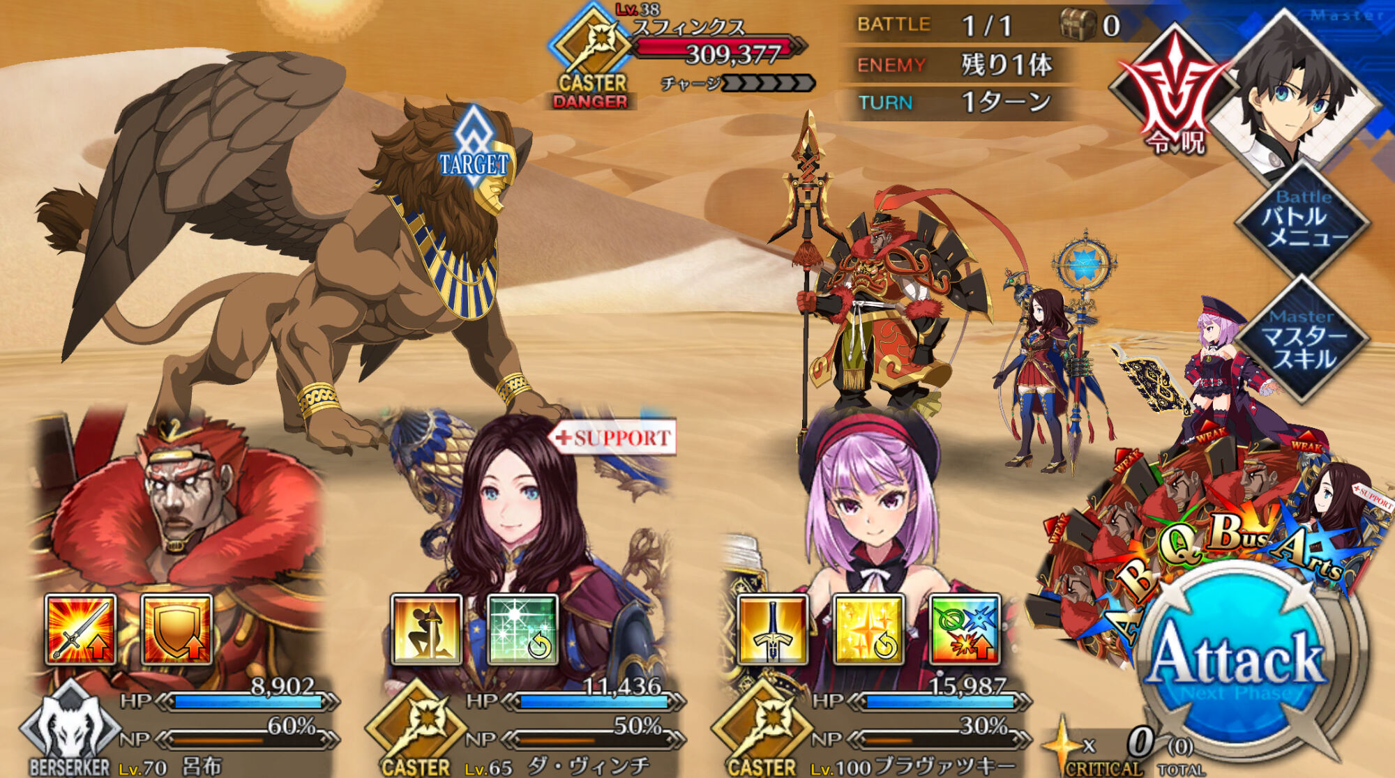 え?サポにキャス狐出せよって...いや〜うちのキャストリアちゃん100だから..BアタッカーをNP配布鯖Wで運用するのが楽しい