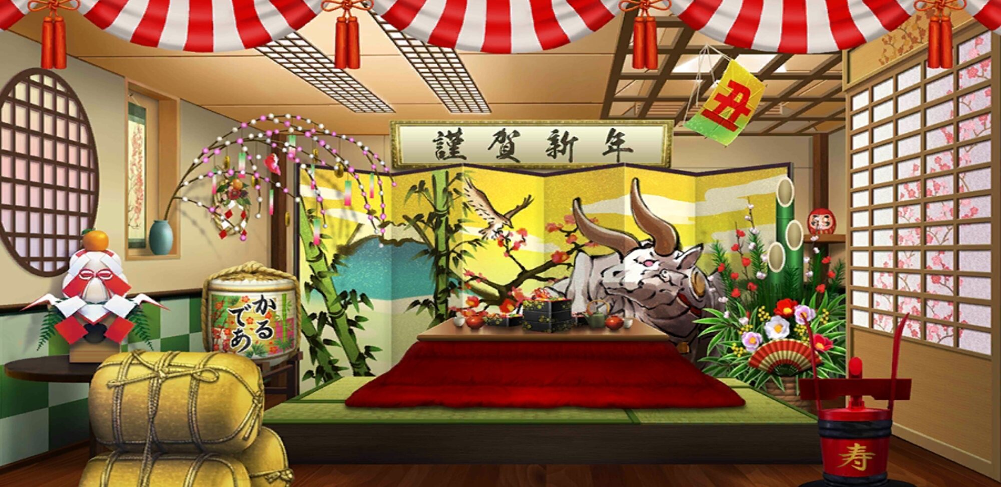 元日から2日の夜、または2日から3日の夜に見る夢は「初夢」とされていて、この夢の内容で、1年の吉凶を占う風習があるそうだね。君たちはどんな夢を見るのかな?