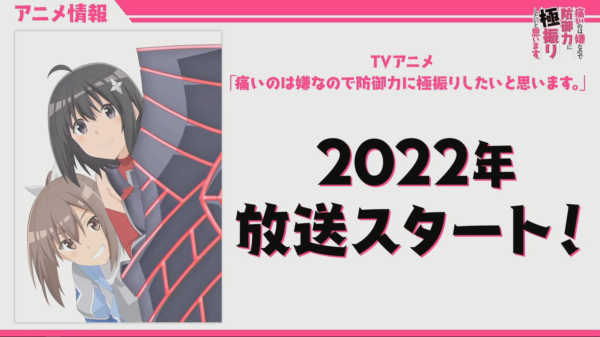 上の方で情報が載ってる『防振り』も転生・転移要素なしのなろう系発のアニメではあるけど、《一度もアニメ化していない、なろう系作品》って括りなら、贔屓目が大分含まれている自覚はあるけど『シャングリラ・フロンティア~ク.ソゲーハンター、神ゲーに挑まんとす〜』が一番可能性がデカい気がする。