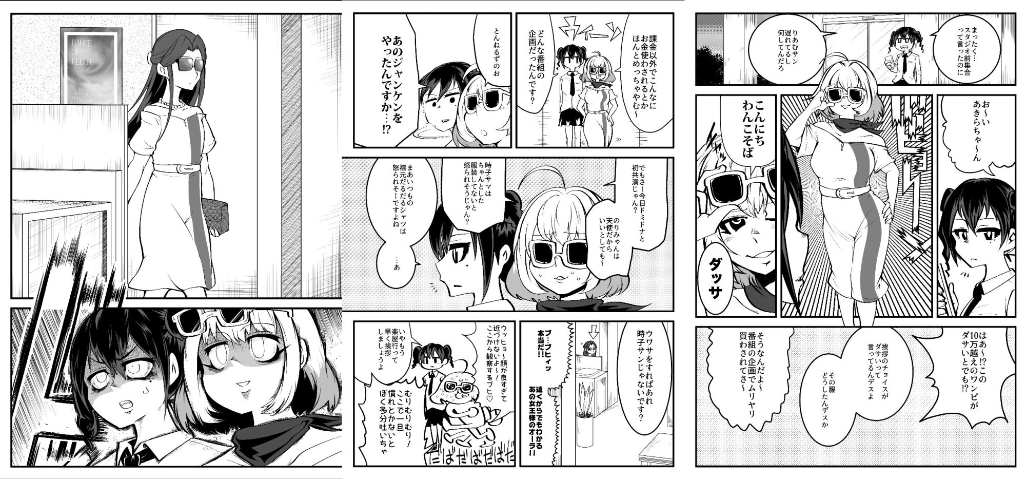 単眼猫「ゲラゲラゲラゲラ」1.まず少女たちがきゃっきゃうふふしてる絵柄で注目を集めます。少女でなくてもとにかく明るめな絵柄なら大丈夫です