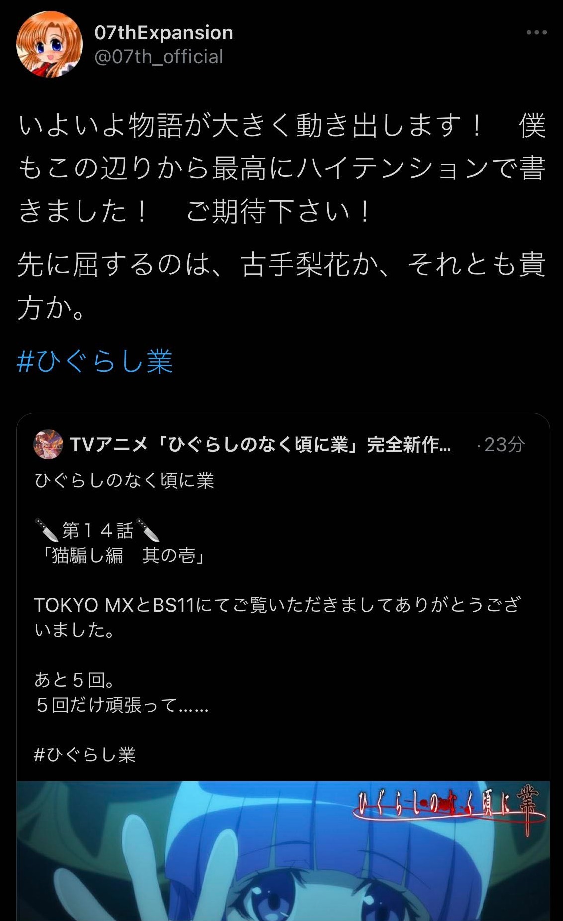 ひぐらしってゲーム盤って設定だから外部から助けに来ても、GM視点やってる魔女たちの掌の上にしかならないんだよなぁサンデーは古見さんのアニメ化まだ?