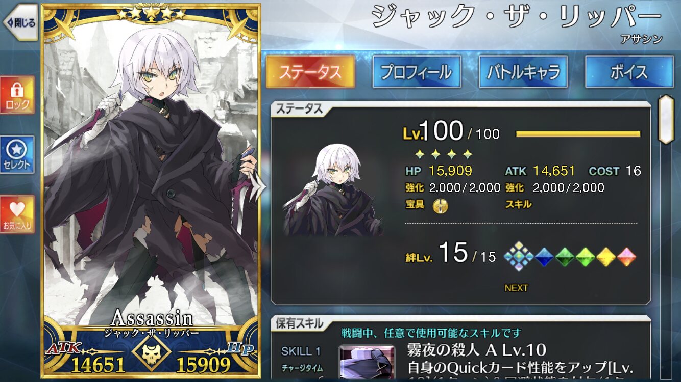 来たら宝具5まで重ねて、今はこんな感じ
