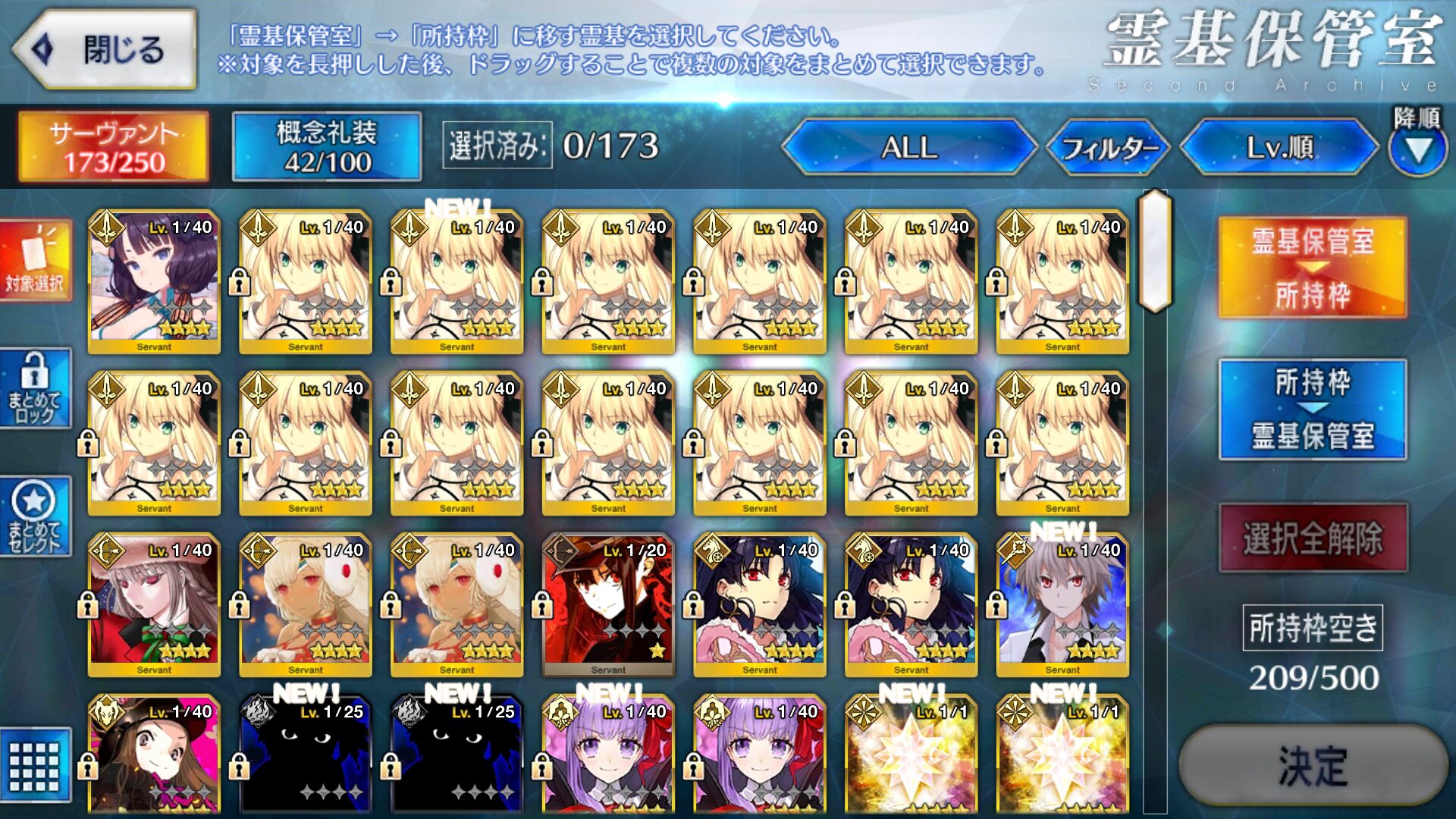 とりあえず宝具重ねて保管庫に入れてる