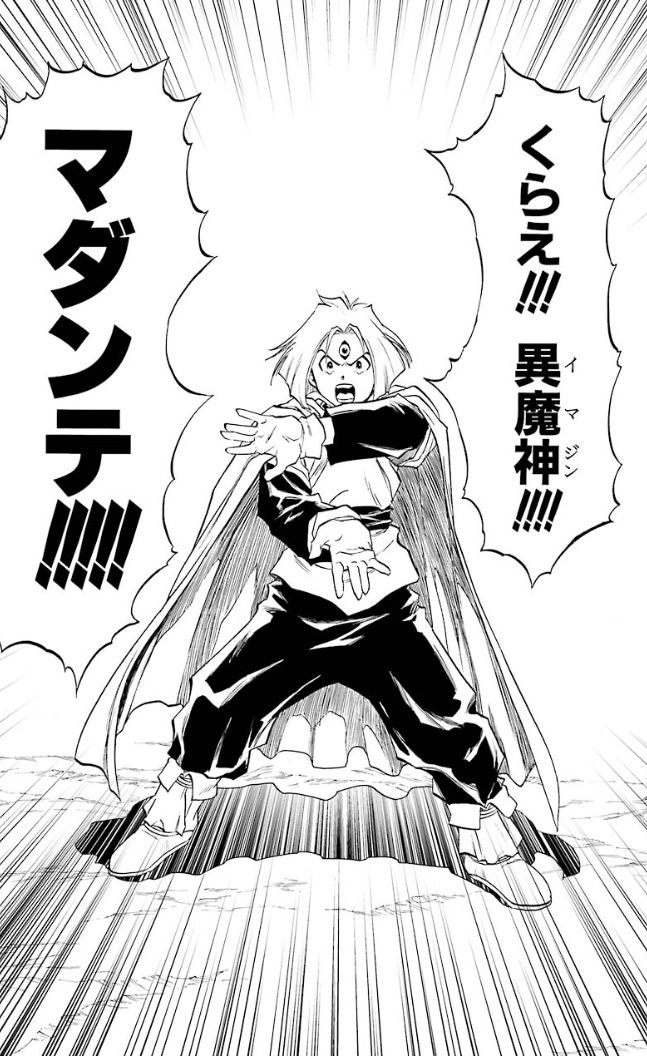 ゲームのマダンテが魔力を全放出する術で、ロト紋のはギラ・イオ・バギも加えたメドローア>>41