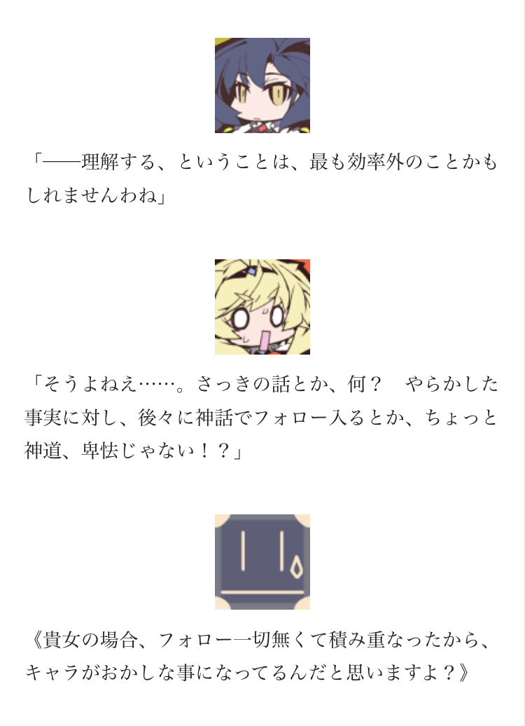 フォロー入ってたらここまでトンチキ女神にならなかった気がするけど個性も消えてた…いや、ひとつやふたつのフォローで消えるほど軟弱なトンチキ具合でもなかったな。被った…。