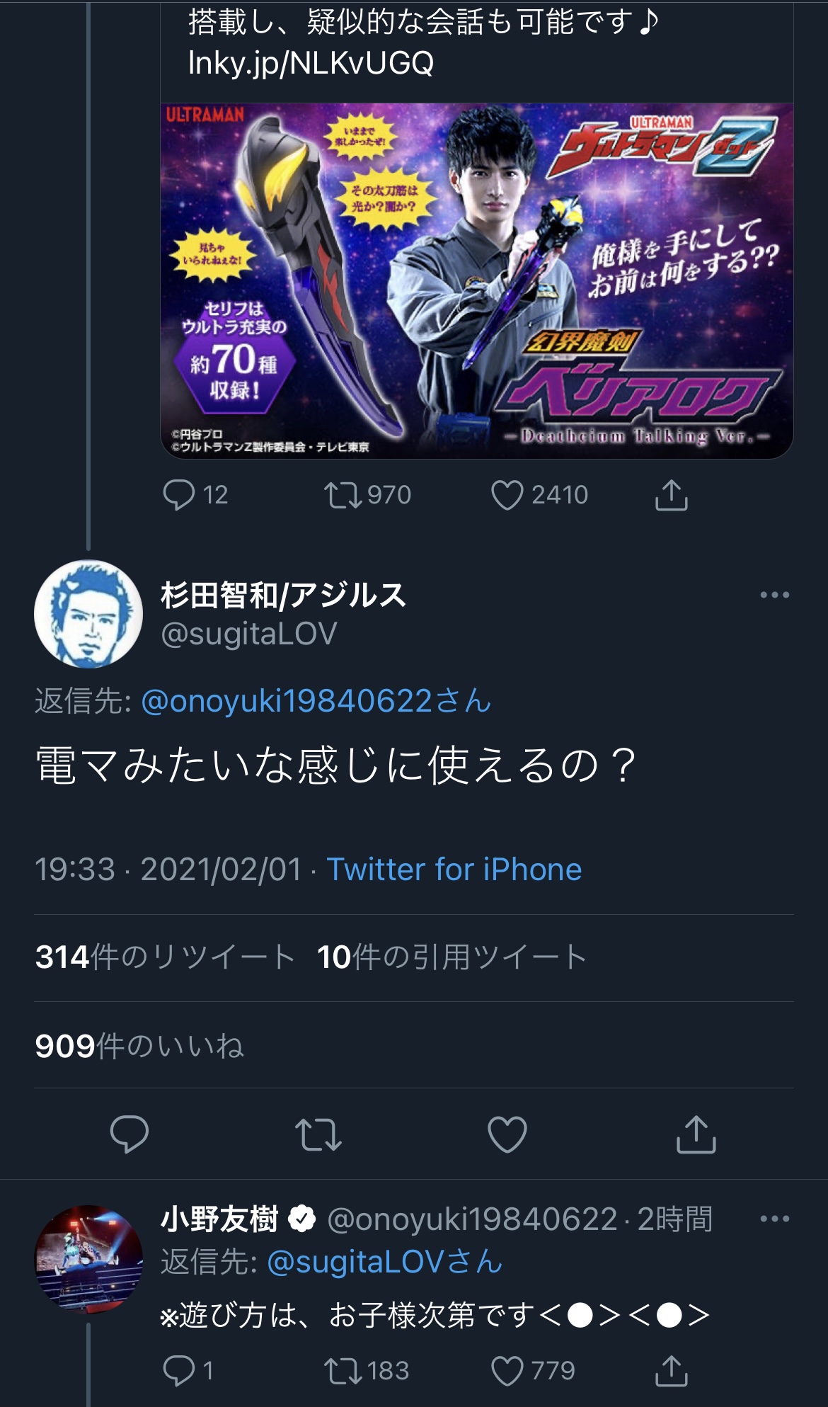 叫ぶだけならセブンが「デュワ!」と名前や固有名詞ならAの「ウルトラ・タッチ!」が最初>>904