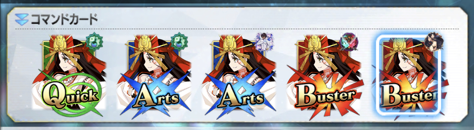 ではいかに効率よくNPを稼ぐか。私の場合はQ宝具QQで星を稼いでからのBAQやAQQのクリティカル狙いですね。ここにスキル1とカルデア礼装の瞬間強化を被せて強敵にぶつけます