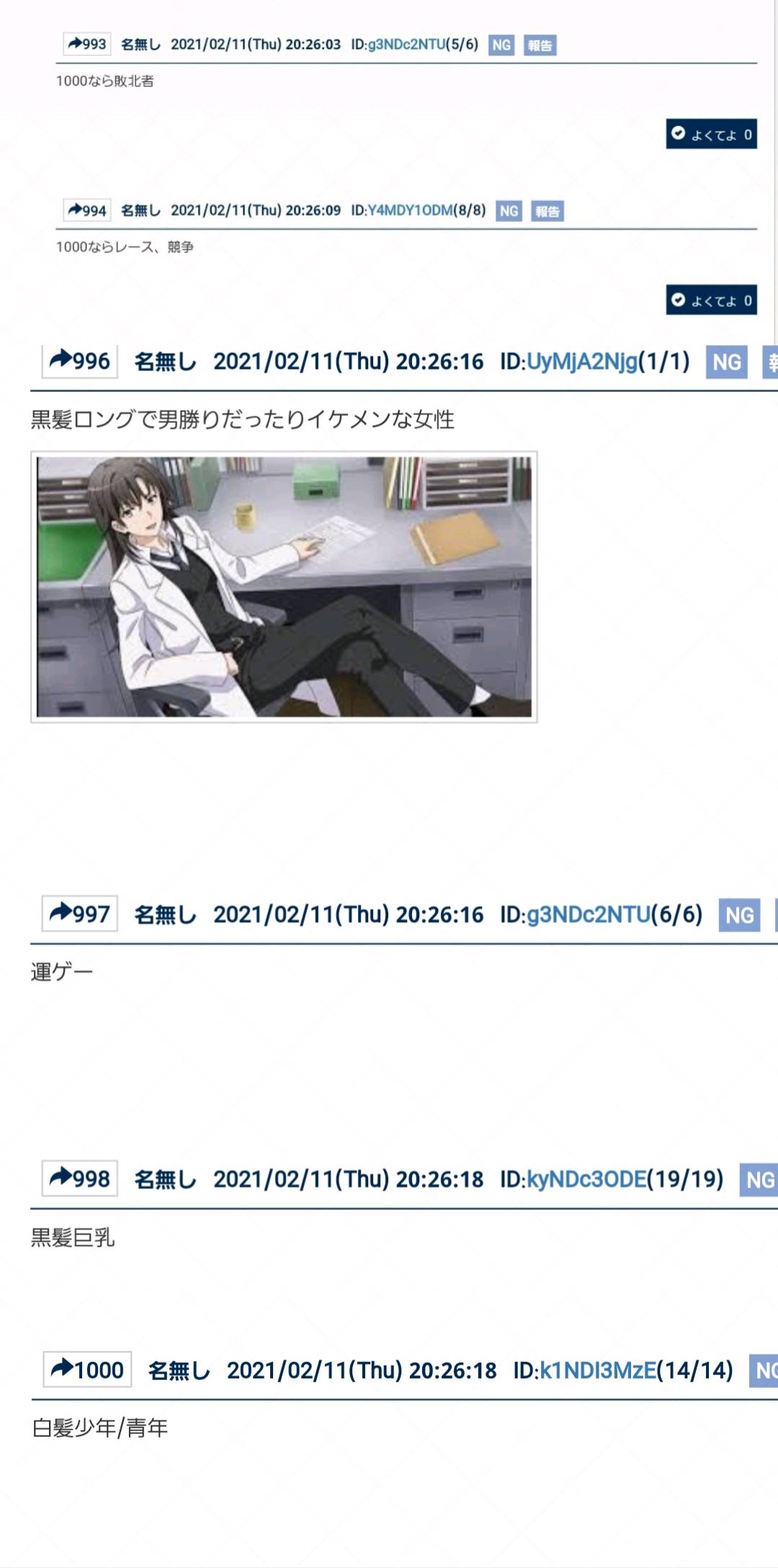 原則として次スレは>>950を踏んだ人が宣言して立てて下さい。立てられない場合は>>970にお願いしますこれ白髪だろって髪が銀髪扱いされてるとモニョる