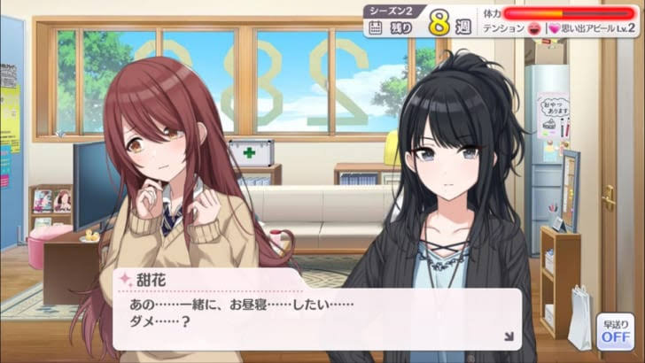 彼女の過去については「starring F」ってカードを引いてコミュを見よう。>>933