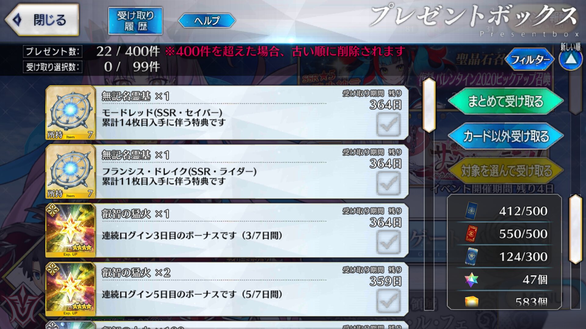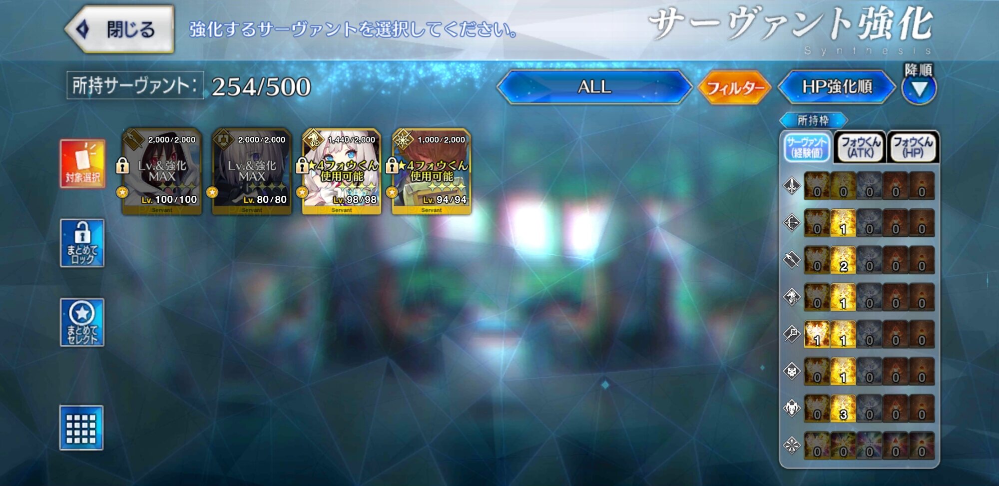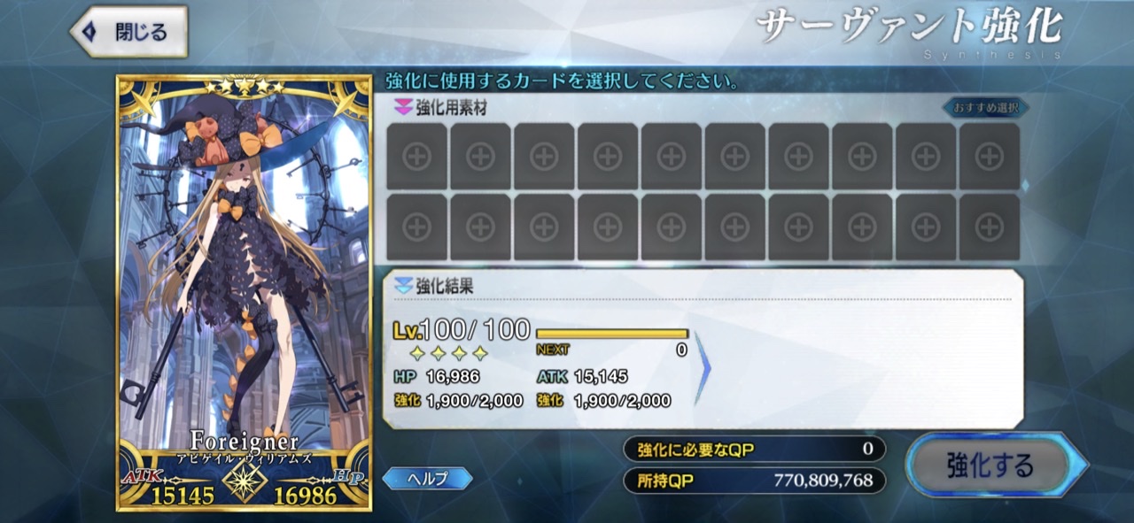 マシュをマックスにした後は聖杯サーヴァントに満遍なく。