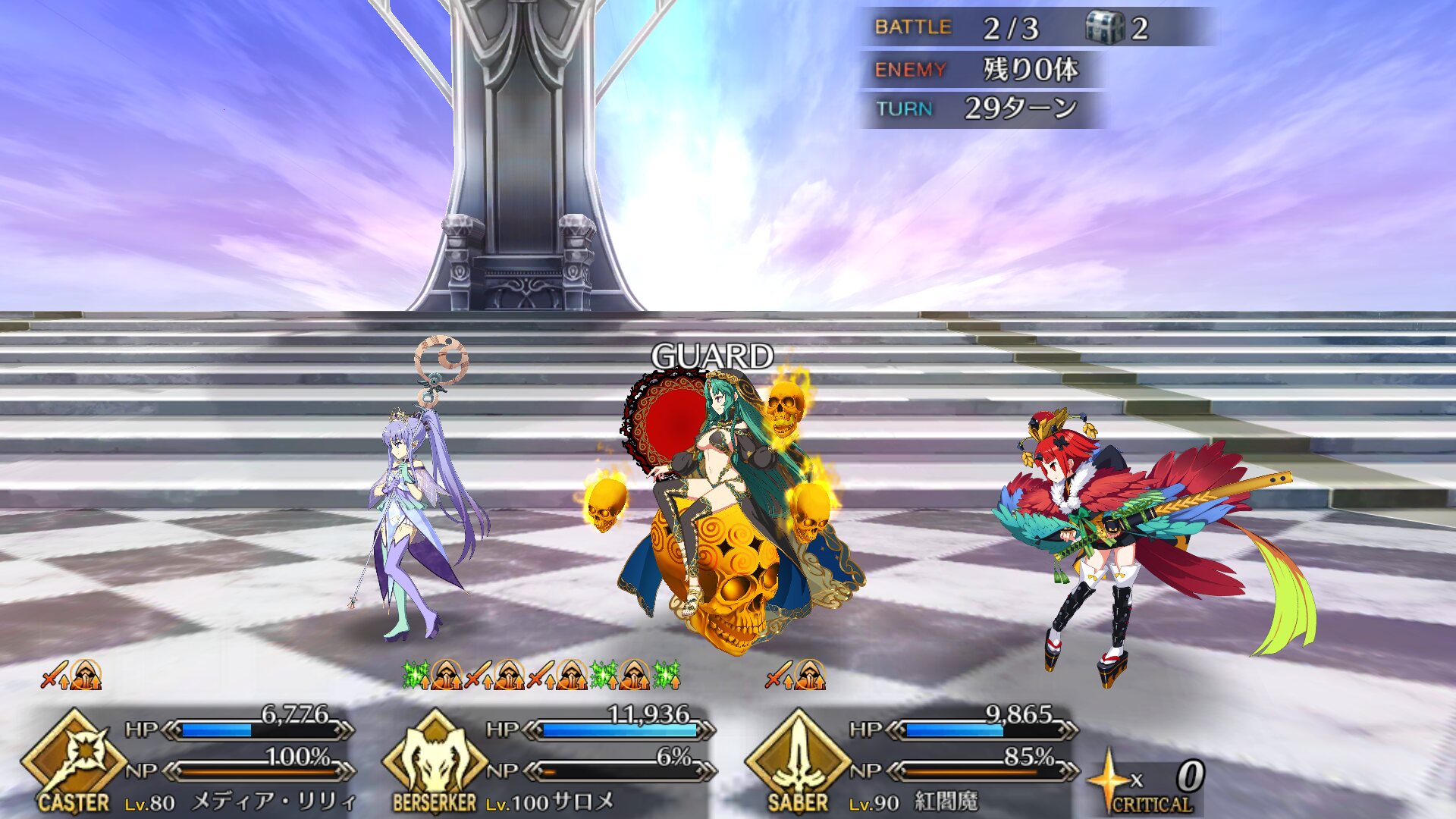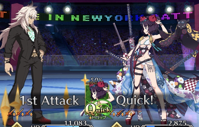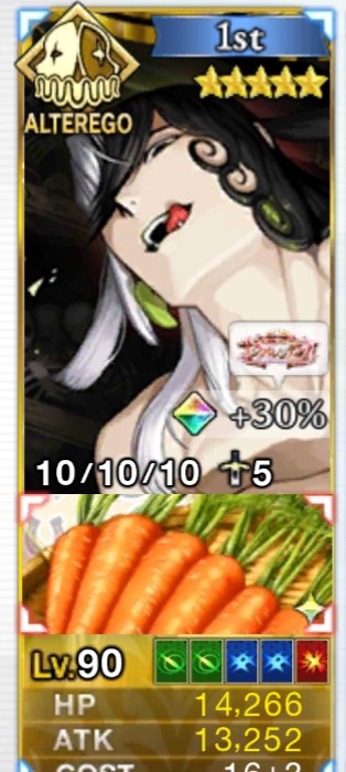 ・また、Bバフと同時に1T限りで自分のカードを全てBにできるユニークスキルがあり、星出しもNPチャージと同時に1Tだけだができる(15個)ので、カードが2枚以上あればバスターBチェインが確定しクリティカルを乗せたえげつない破壊力を叩き出せるぞ!