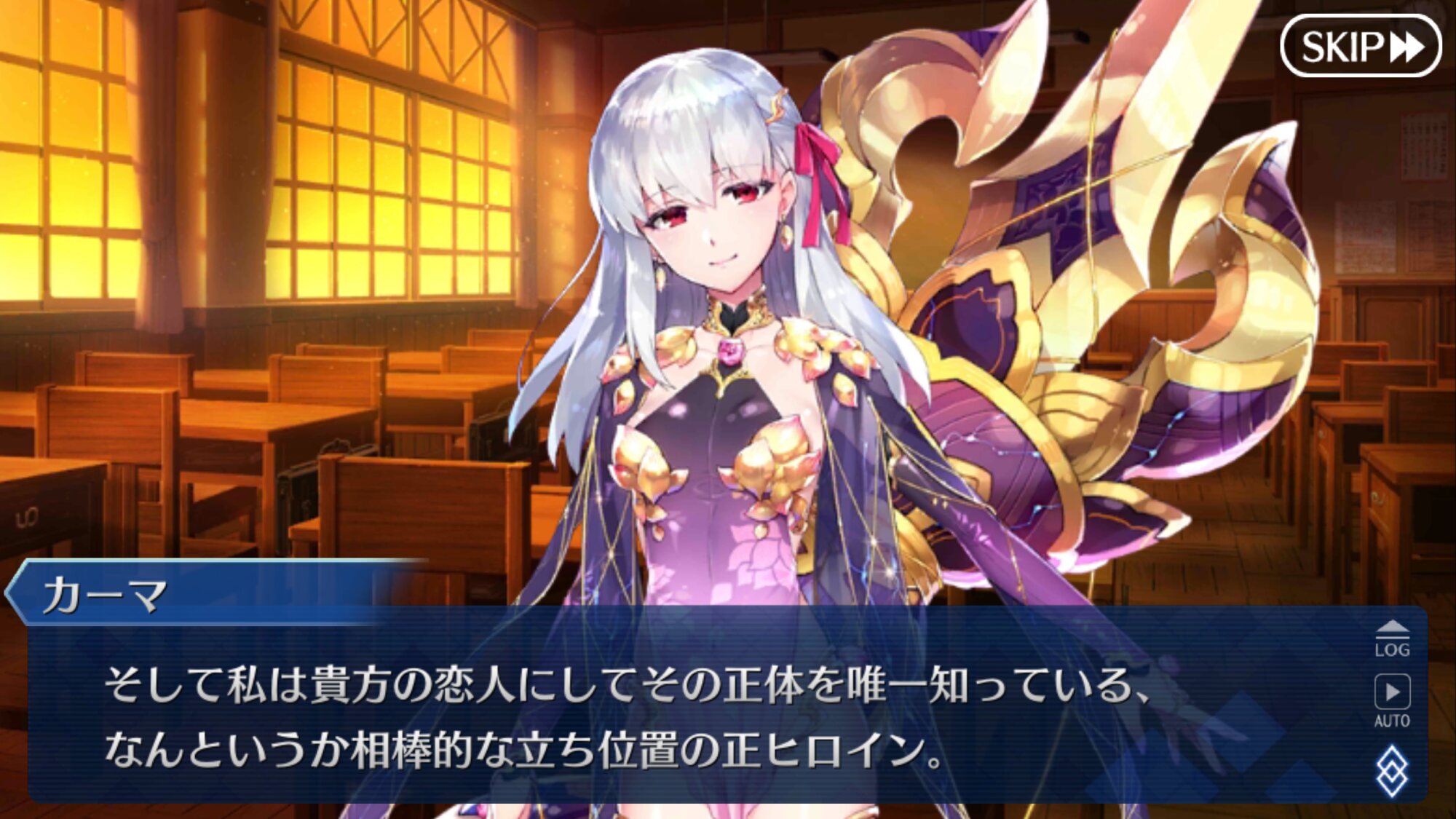 まずあのビジュアル最高だよね。正統派の少年にも見える金髪碧眼の美少女騎士で、15歳の見かけで身長154cmというアビーよりちっちゃい身体で「これは、人理を守る戦いである」とかキリッとした声でいうもんだから「我が王!我が王!我が王!」って頭円卓になるよね。当たりは柔らかいけどデレとかは少な目、むしろその方がいい理由は後述。残念だけどあんまりイベントやメインストーリーには出てこないけどこれも理由は後述