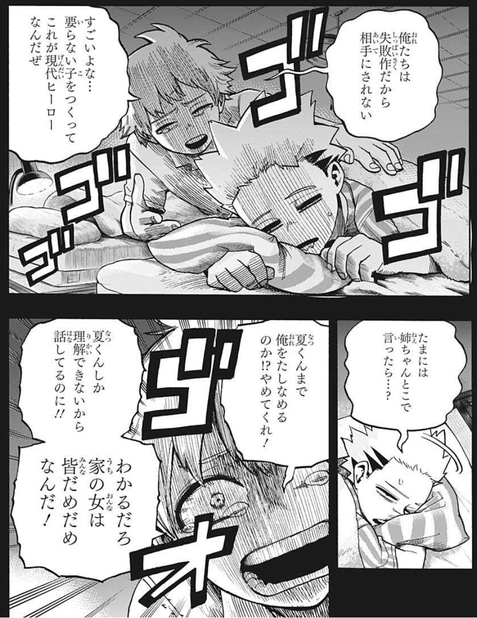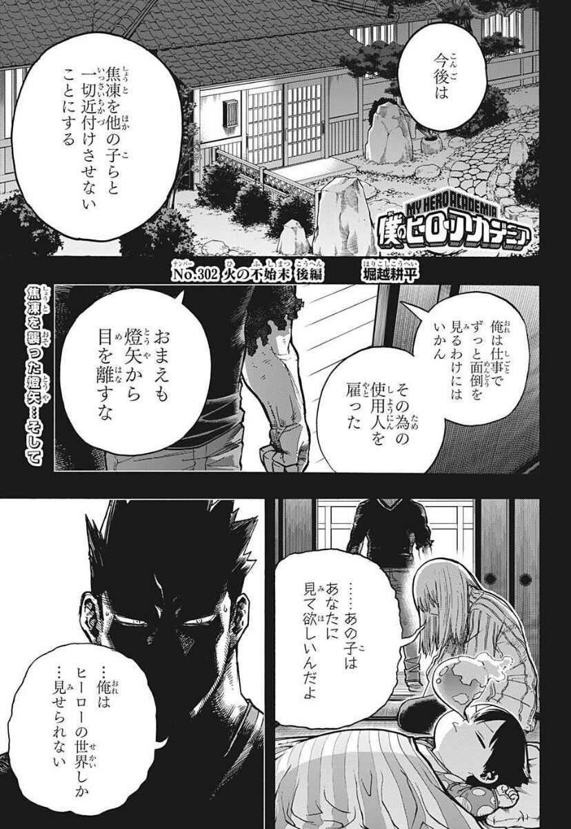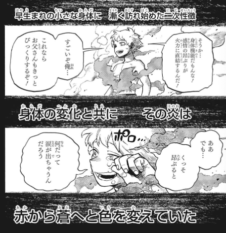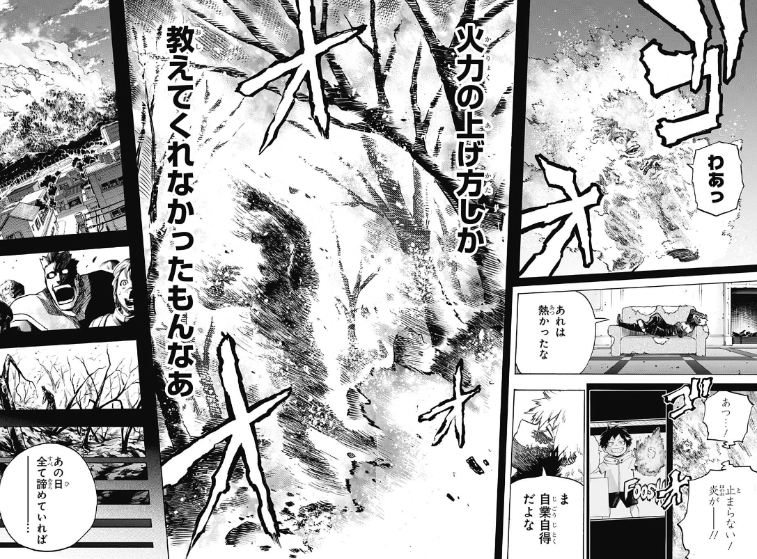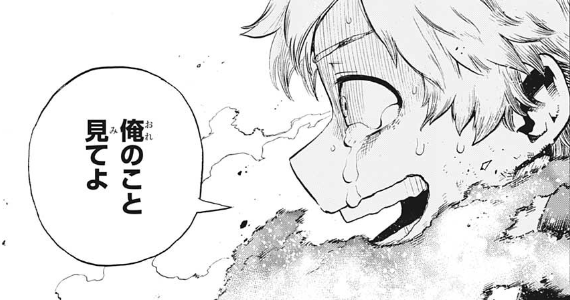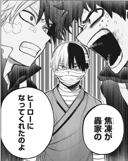 ここまで死亡フラグ積み重なると逆に生き残りそう最後の1つ前のコマでエンデヴァーが泣いているシーン、「オオオオ」に混じって「ショオト」があるのに気付いて笑った