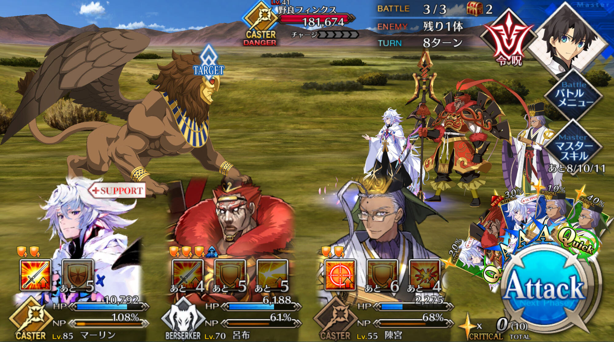 呪腕のハサンみたいな複数回避持ちアサシンはオススメよ後輩。タゲ集中持ちでしぶとく生き残らせながら戦って見せなさい。