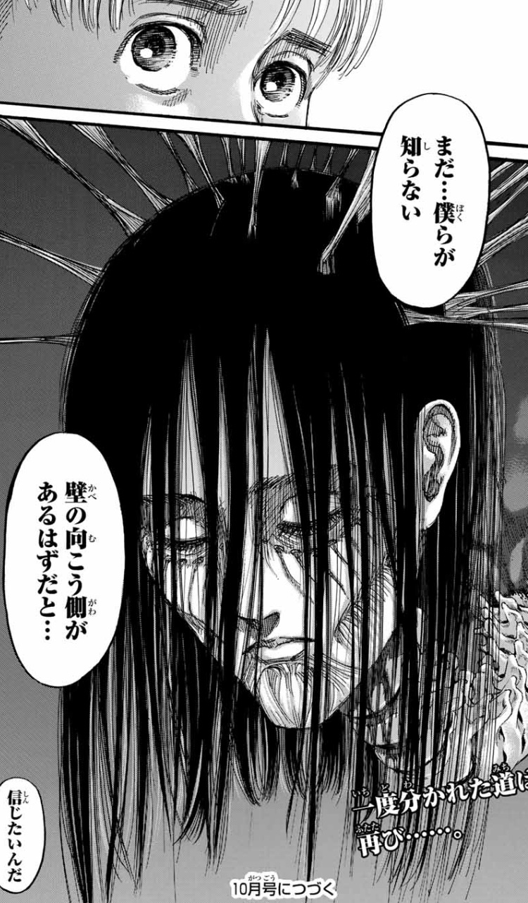 それまでは月刊誌で『巨人』を扱う分で必要な『大ゴマ・見開き』をフル活用しつつ新情報を小出しにして世界観を広げてたけど、王政編は終盤までその前者部分がないのにそれまで通りの新情報量だったからテンポ悪かったんだろうなぁ。>>965