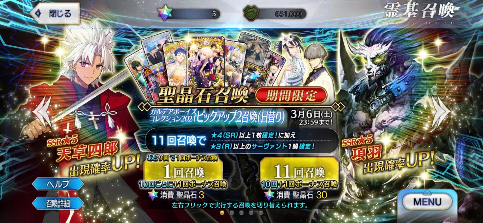 何故か隣でピックアップされてる双子が来ました 思わずちゃんと項羽様ピックアップの方か確認してしまった>>924