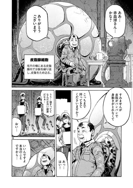 過酷な環境でのサバイバル要素の他にも、無印だと触れにくい赤血球の寿命による処理や、死ぬこで役割を果たす細胞の描写、そして下半身に血液が集まるあれの仕組みとか、こちらだからこそ踏み込める部分とかもある>>60