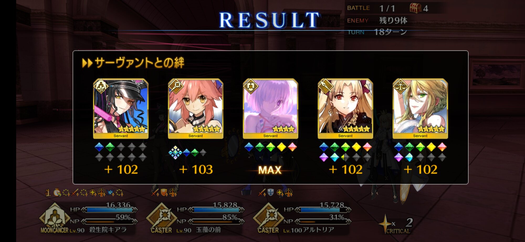 最後は月キアラと道満の二人でフィニッシュ。