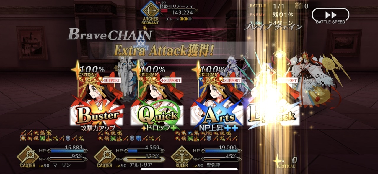 変則編成はランサー以外だとアーラシュで吹っ飛ばされるからそこら辺の対策も兼ねてるんだろうな。まぁ孔明、Wキャストリア、陳宮、アーラシュの編成なら1ターン目で孔明、陳宮でアーラシュにバフかければランサー相手だろうとアーラシュでも大体吹っ飛ばせるんだけどね。>>41