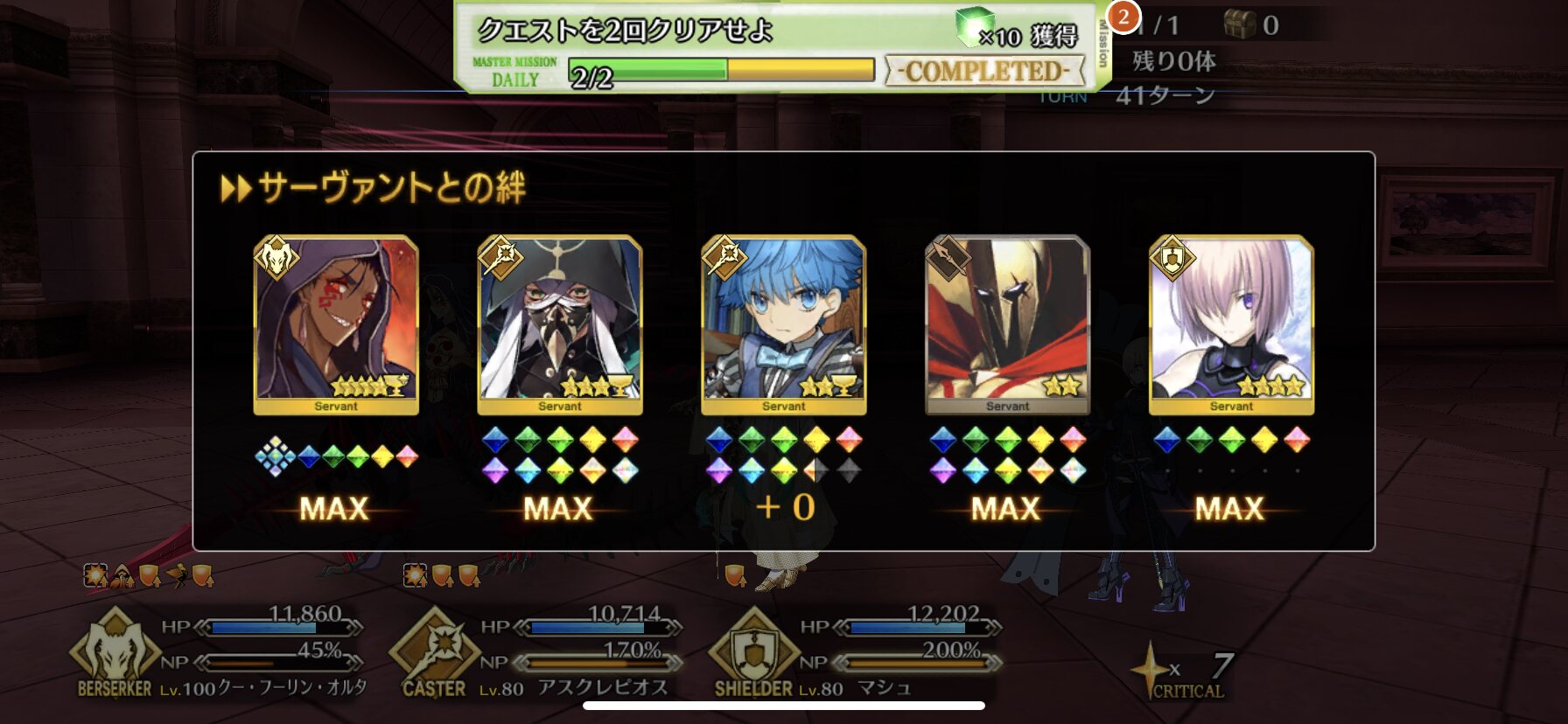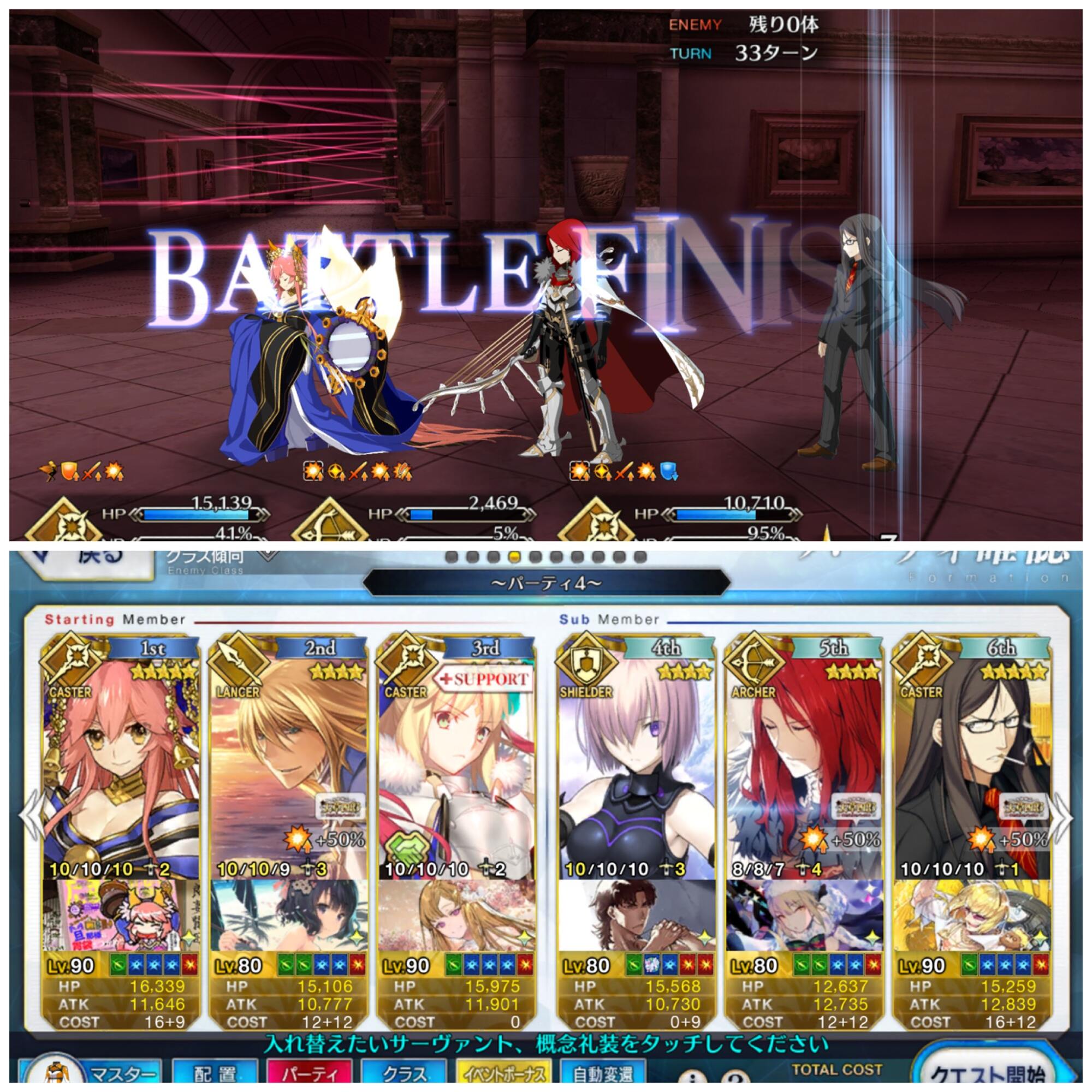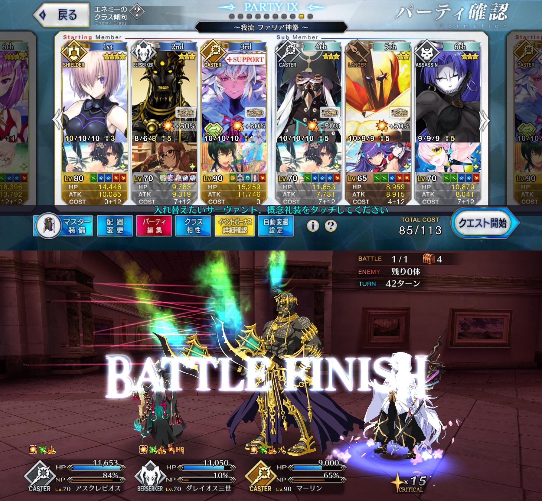 マーリンと組ませたら安定感凄まじすぎて適当に入れてたスパルタクスも余裕で生存できた。いっつもタスクキルしてやり直してるけどその出番もなく、もしもと思って絆礼装でガッツつけてたけど出番もなかった。>>5