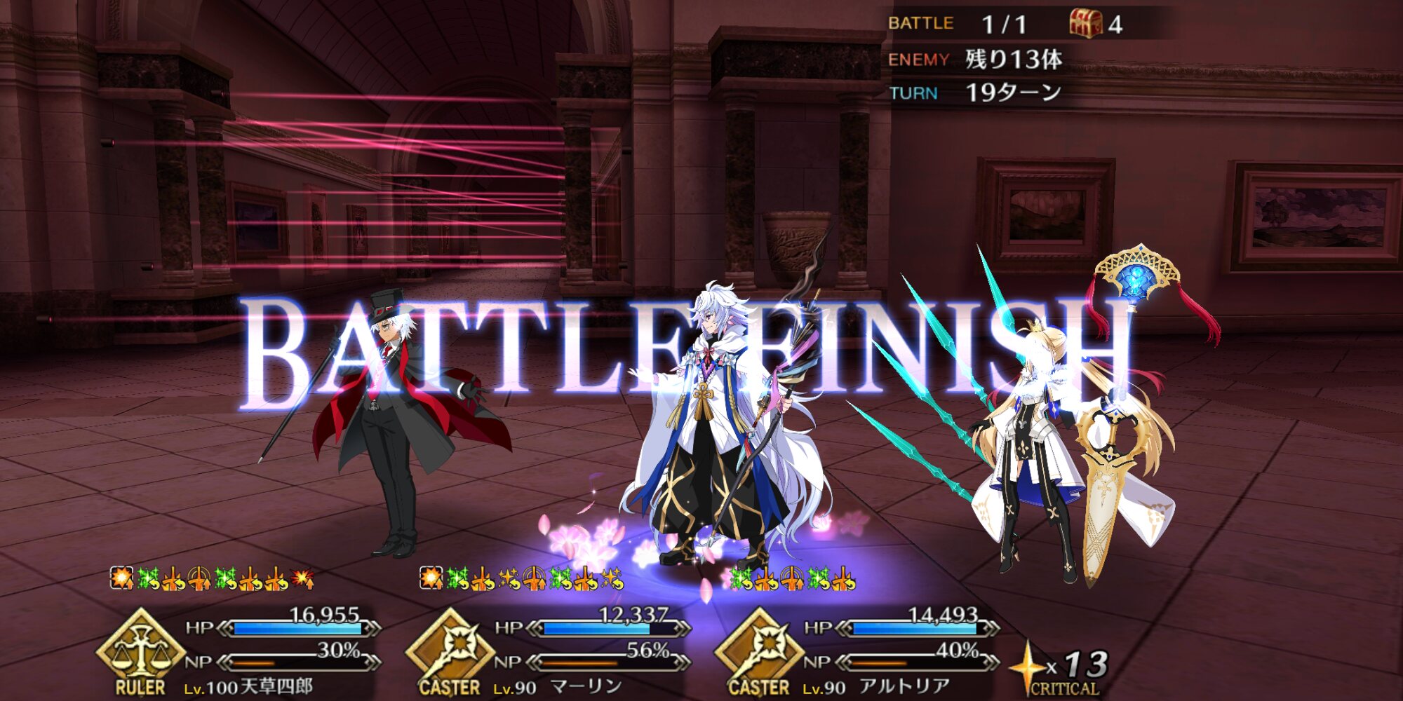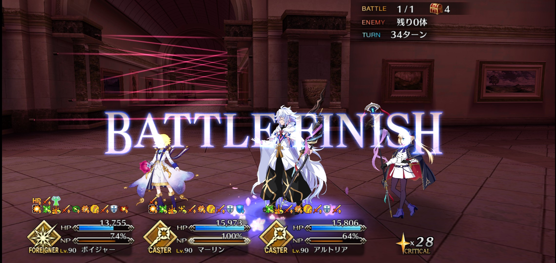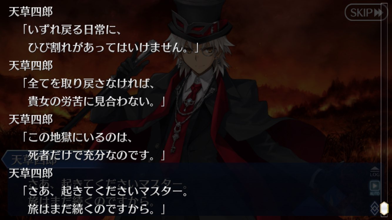 楽しかったぜェwwwお前との英霊ごっこォ~~!!的な…?怪盗になった理由、地獄で一人だから楽、と最後に笑う天草君と、今回ガチャで引けた天草ルーキーとして大満足なイベントでした!