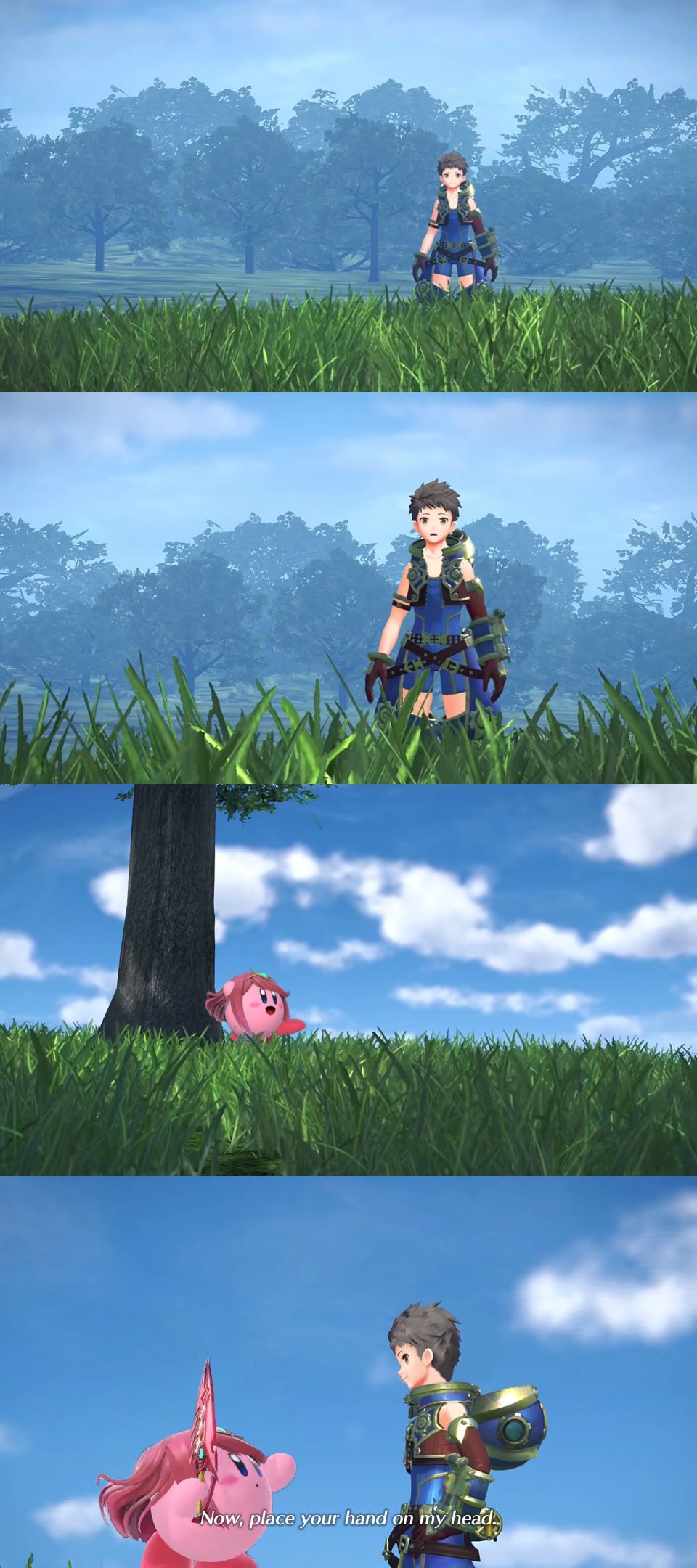 何か食べるものを、と要求されてコッコロお手製おむすびを渡す騎士クンの図。