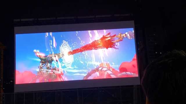 スクリーンの後ろ的に店頭やビルの外側に付いてるタイプのスクリーンでの予告(夜撮影)か自宅撮影かと