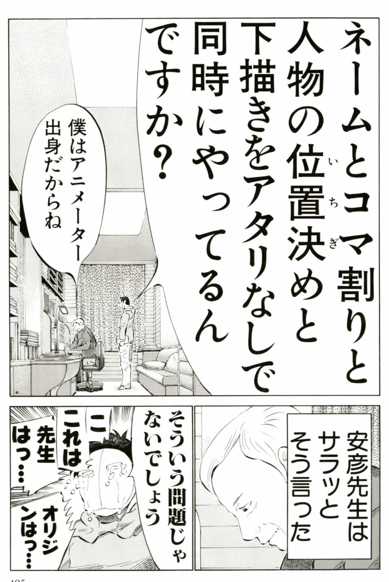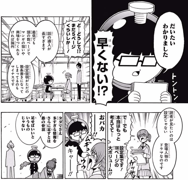 ・コマ割り(大体どの辺にどれだけの絵を描くか、またどのシーンをどこに配置するかの決定)