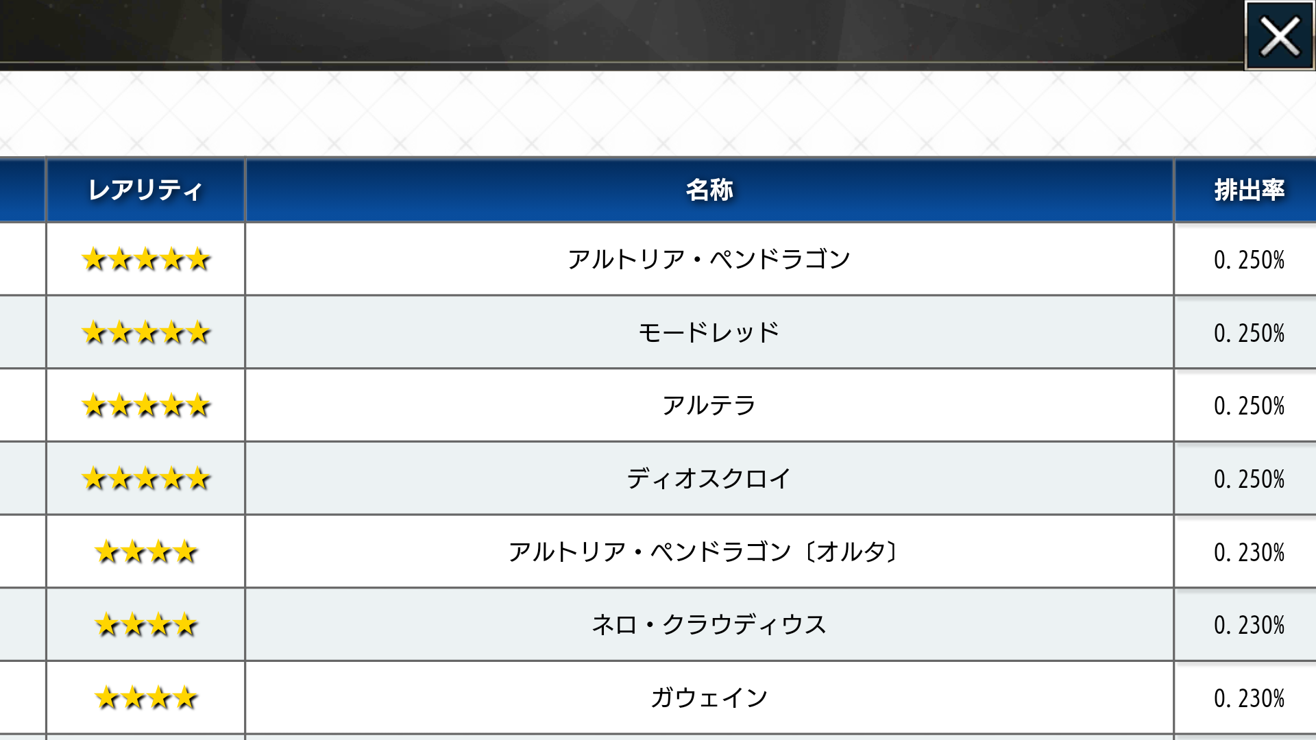 誰も答えてないから気にしなくていいよ星5宝具5は輝かしい歴史なばかりではないのだ……(その裏で当たらない目当ての星4を見ながら)