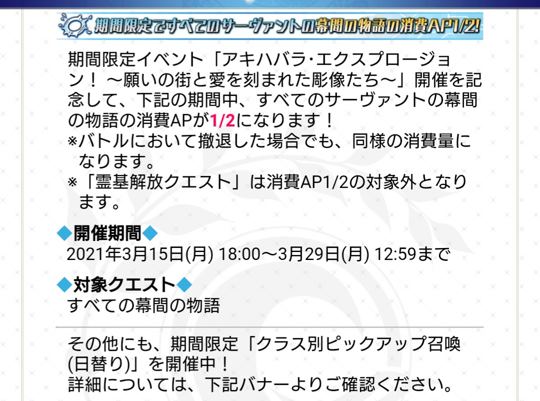 AP40のクエストが無さそうなのが残念だな……AP削るのが大変になる……Requiemコラボの後日談なら、復刻をしてからのはず…