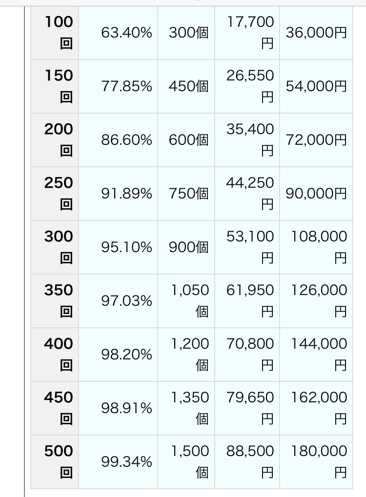 (あれは天文学的な偏りか幸運が必要ですね。もし作為的にやろうとすれば膨大な時間かお金が必要です。普通に課金でやると諭吉二桁飛ぶのは覚悟したほうがいいですね)>>915