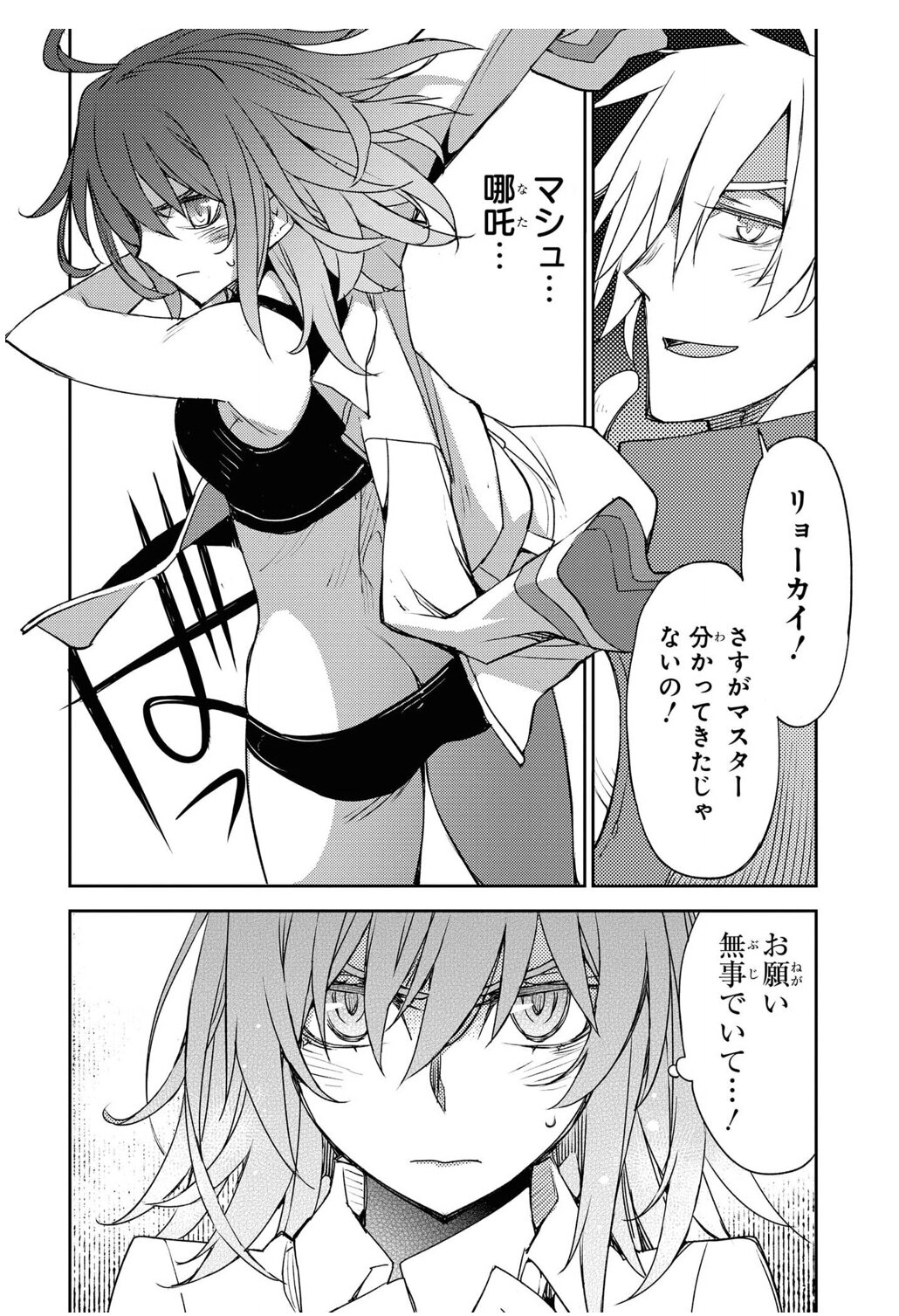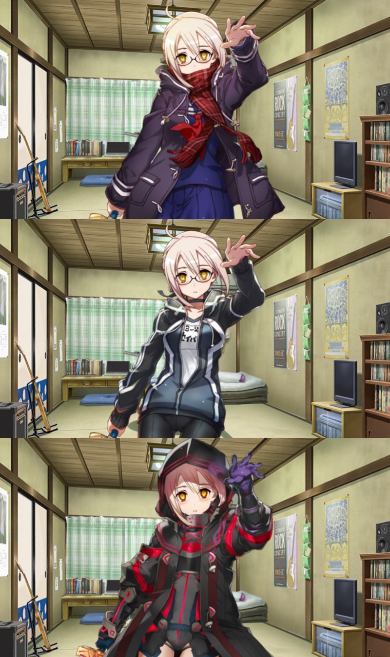 マシュがなんの気無しに目の前でパーカーを脱いで脇を晒したりレオタード式の戦闘服のお尻の食い込みを直したりするので目のやり場に困る