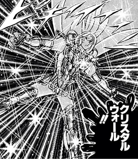 薄い透明板状のバリア貼る当身技で攻撃を受けると破片を飛ばす技