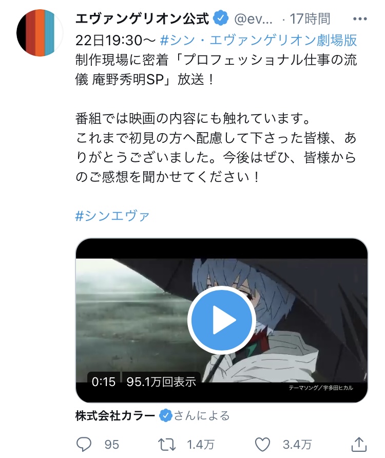 ちなみにTwitterでは、今日からシン・エヴァンゲリオンのネタバレ感想解禁らしいね。