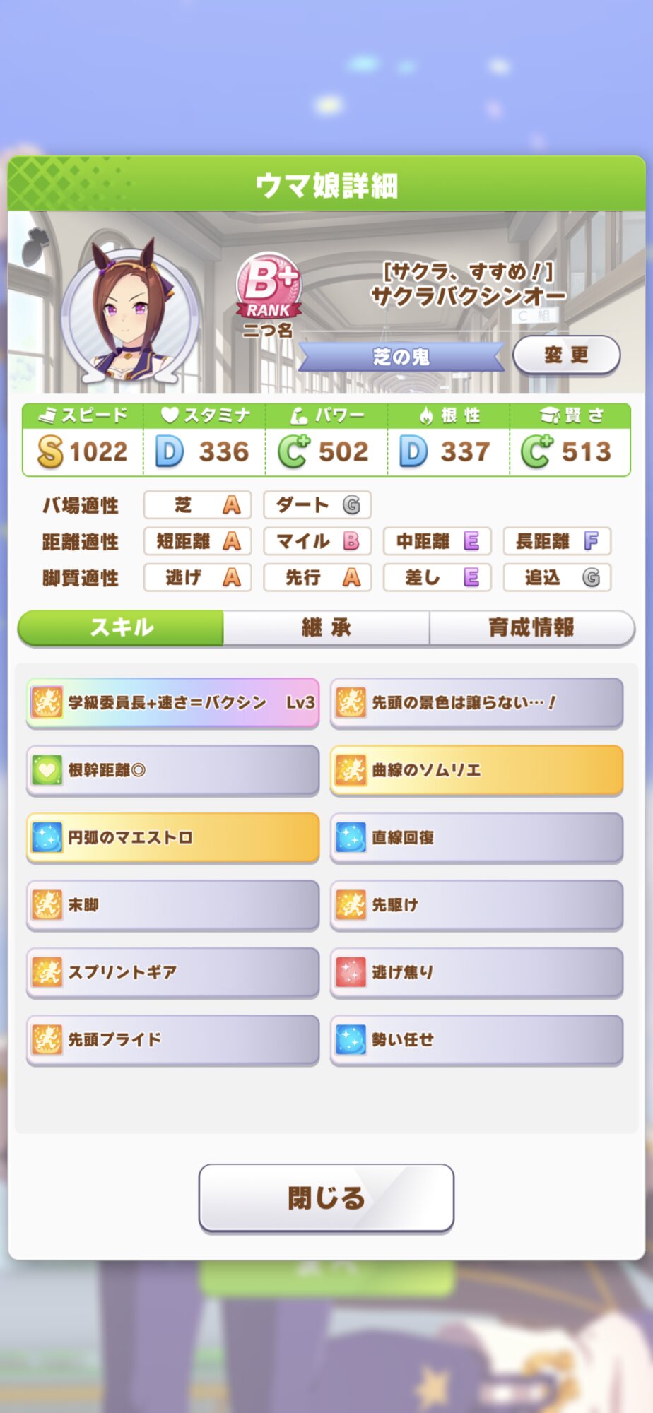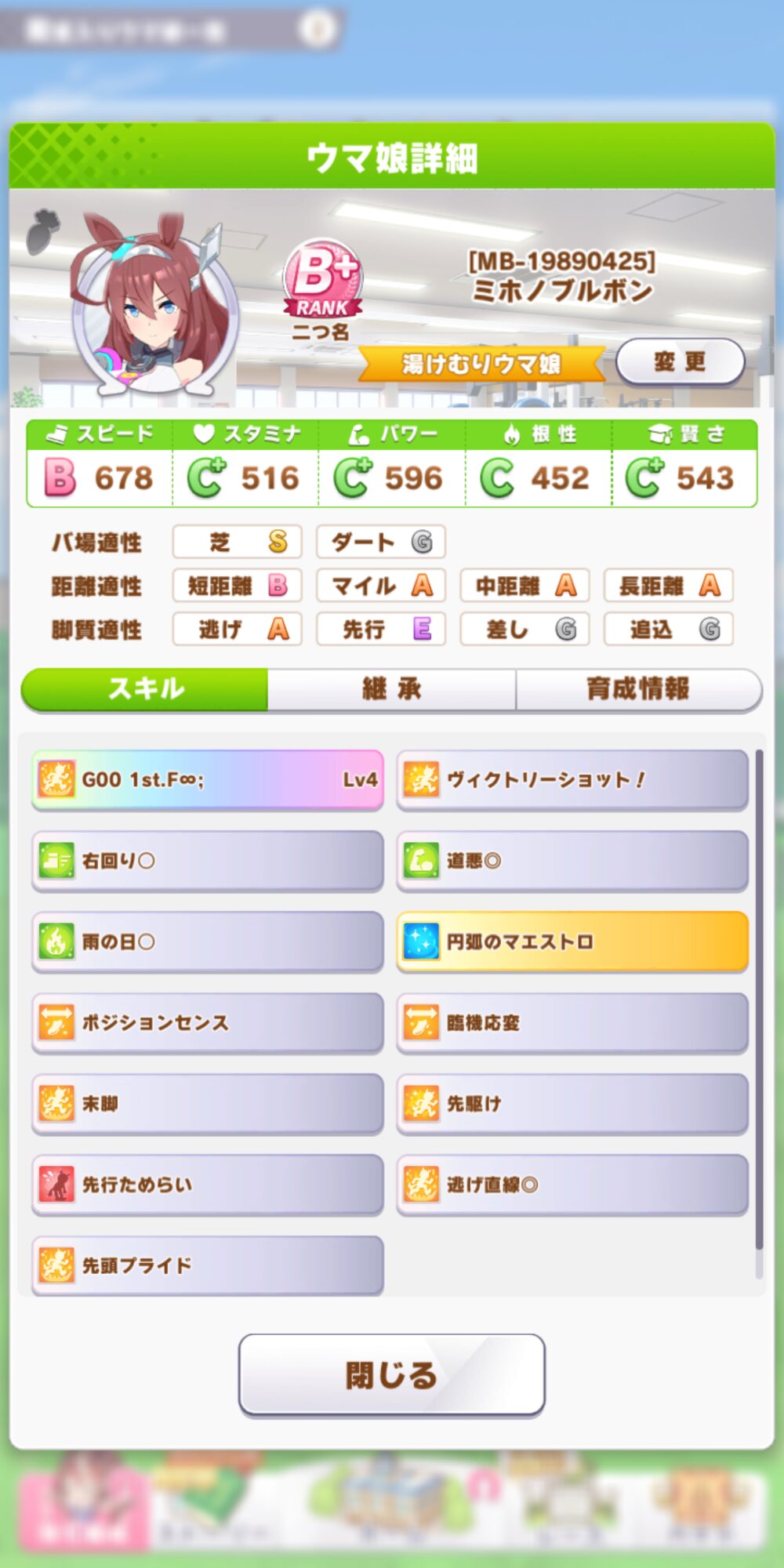 なお謎補正により序盤でしぬことはない主人公にするなら圧勝したディープインパクトみたいなタイプは難しいだろうなぁ