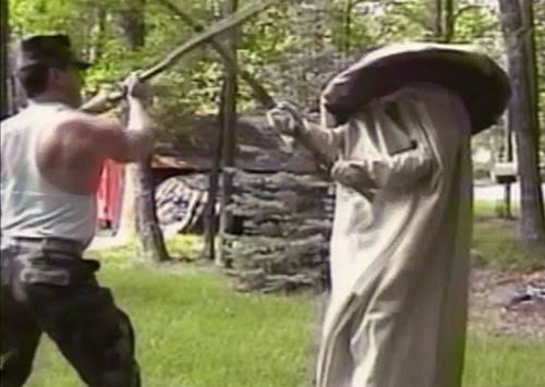 爆風背後に決めポーズ!→軌道おかしくなりながらブーメラン返ってくる→受け取れず首落ちる